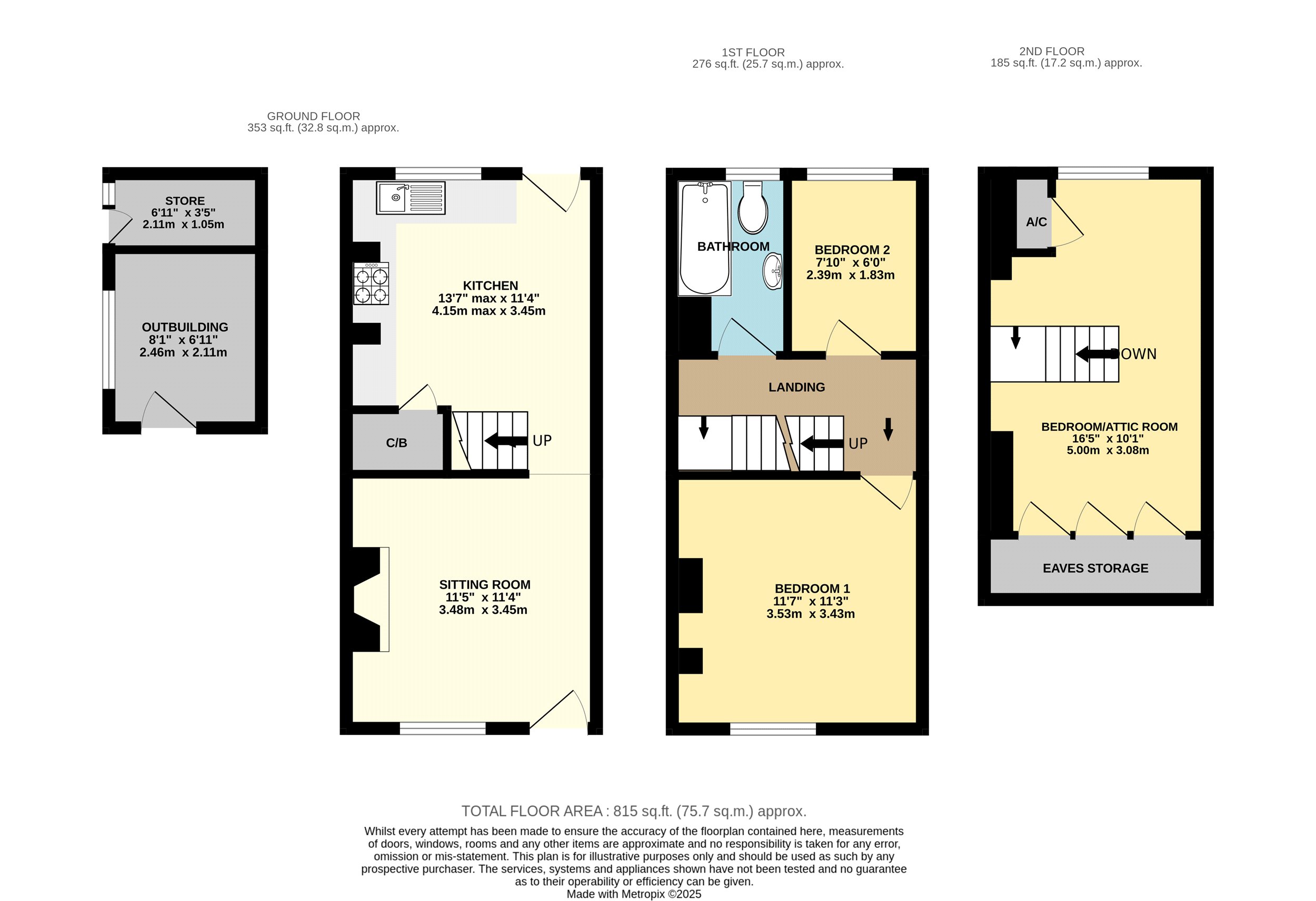 A charming one bedroom terraced cottage with open plan living area, garden and outbuilding