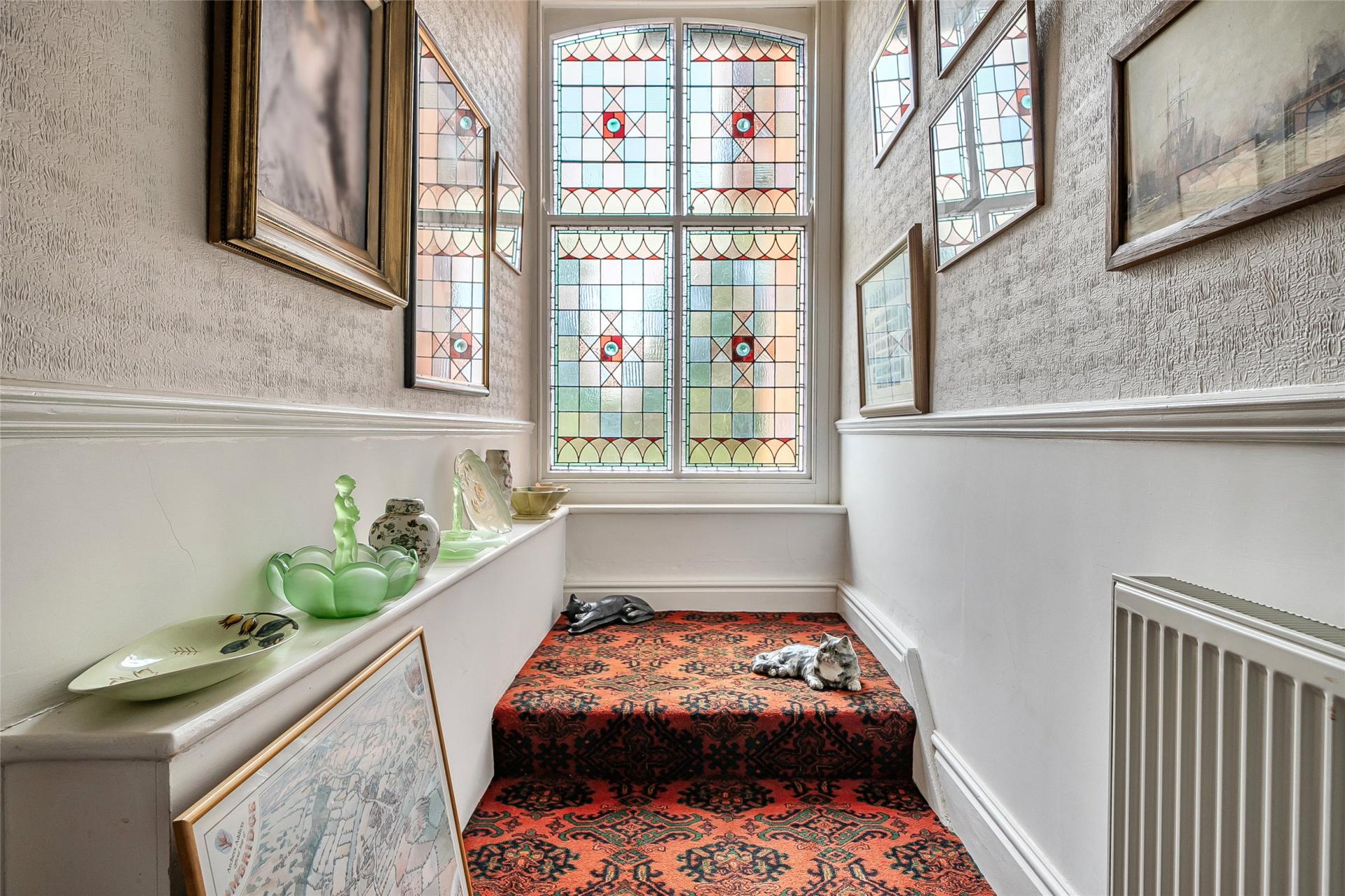Upstairs, a generous landing illuminated by a striking stained glass window leads to three comfortable double bedrooms and a well appointed family bathroom. The sense of space is matched by a feeling of timeless character at every turn.