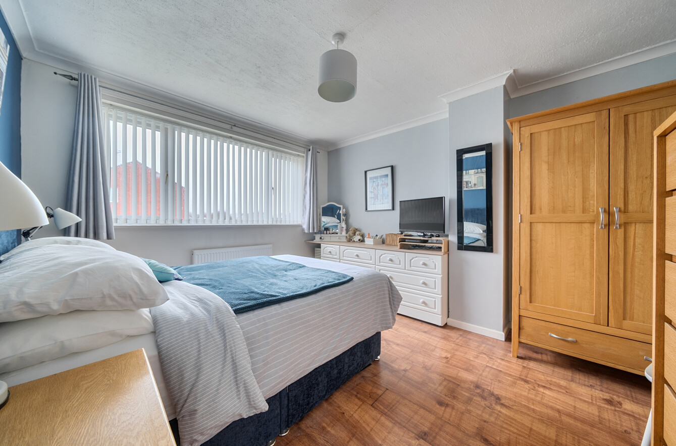 Upstairs, the Master Bedroom is a generous double, accompanied by two further bedrooms, including Bedroom 2 which benefits from a fitted wardrobe. The Family Bathroom features both a bath and a separate shower.