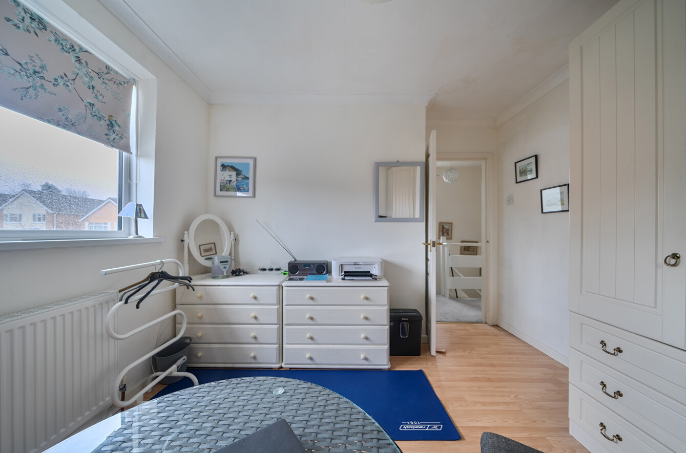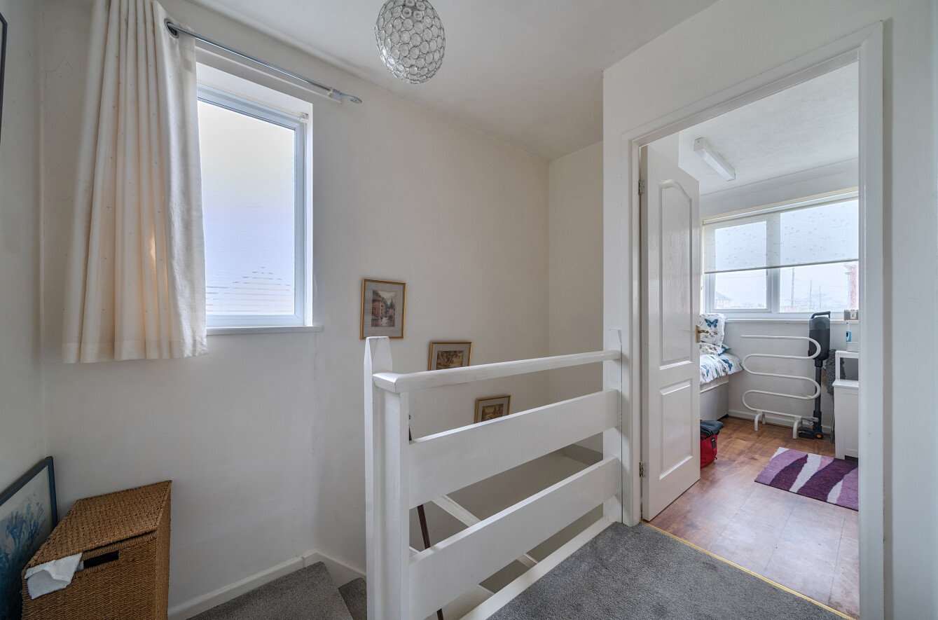 Inside, the accommodation is light, well laid out and ideal for modern living. The Entrance Hall leads through to a spacious dual-aspect Living/Dining Room, which flows into a Conservatory opening directly onto the rear gardengreat for everyday living and entertaining. The Fitted Kitchen sits to the rear, and a useful Cloakroom completes the ground floor.