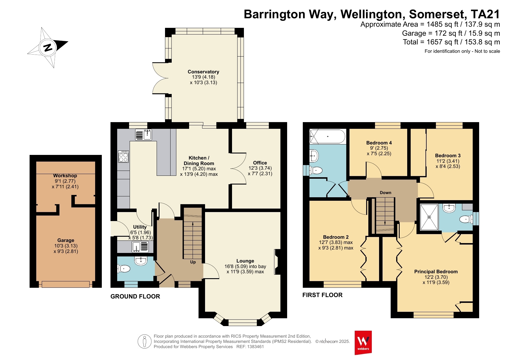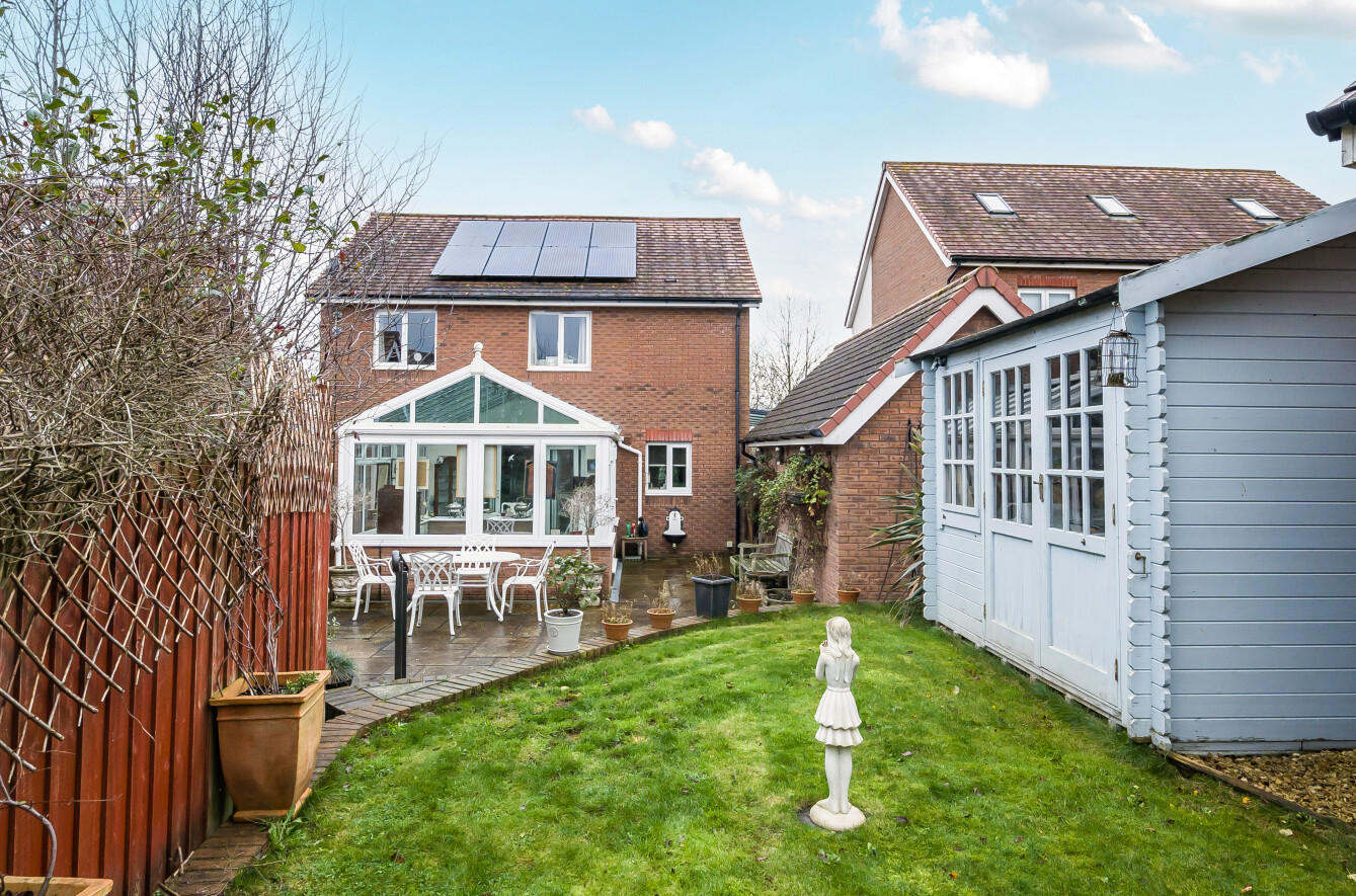 The entrance hall forms a welcoming introduction to the home, leading into a well proportioned sitting room, a relaxing space with excellent natural light. To the rear, the impressive modern kitchen/dining room, provides the perfect hub for family life and entertaining, with ample room for dining. A separate study / playroom, offers valuable versatility for home working or additional living needs, while a useful utility room adds further practicality. A standout feature of the property is the conservatory, enhanced with underfloor heating to ensure comfort and enjoyment throughout the year. This peaceful space connects beautifully with the garden and broadens the homes living and entertaining options. The principal bedroom includes generous fitted storage and its own en-suite shower room. Bedroom two offers similarly comfortable proportions, complete with a built-in wardrobe. Bedrooms three and four, measuring respectively, also include built-in wardrobes, providing excellent space for family or guests. A modern family bathroom serves the remaining bedrooms.