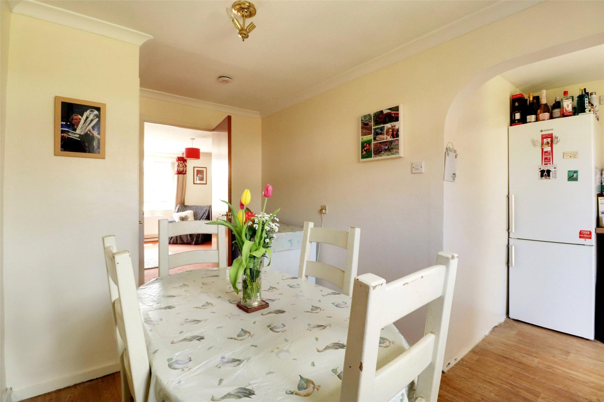 Accessed via the front door through an entrance porchideal for hanging coatsthe property opens into a spacious sitting room with a front-facing window and an inset wood-burning stove. A door leads through to the dining area, which in turn leads into the kitchen. The kitchen is fitted with a range of wall and base units, has plumbing for a dishwasher, and space for an oven.