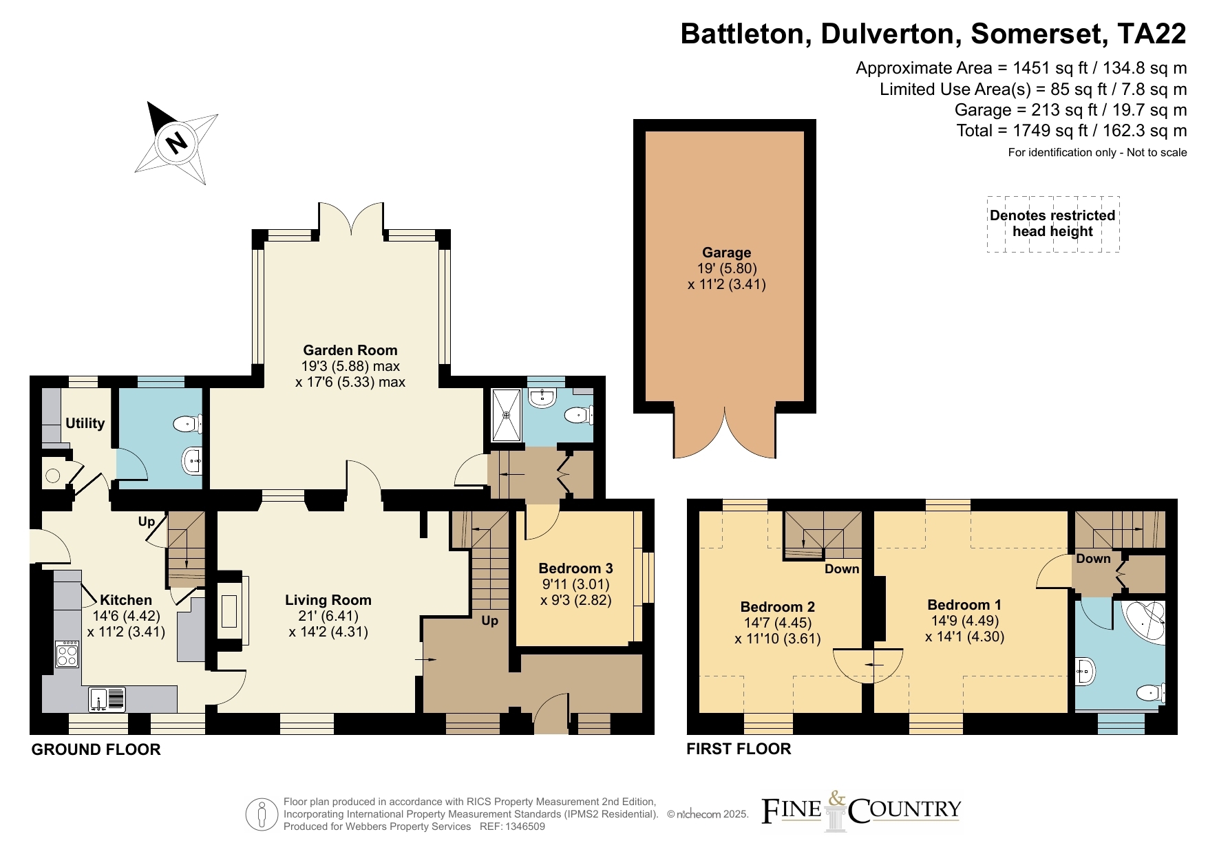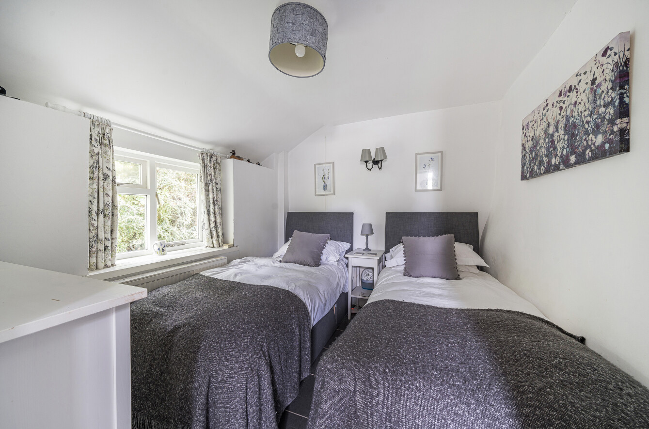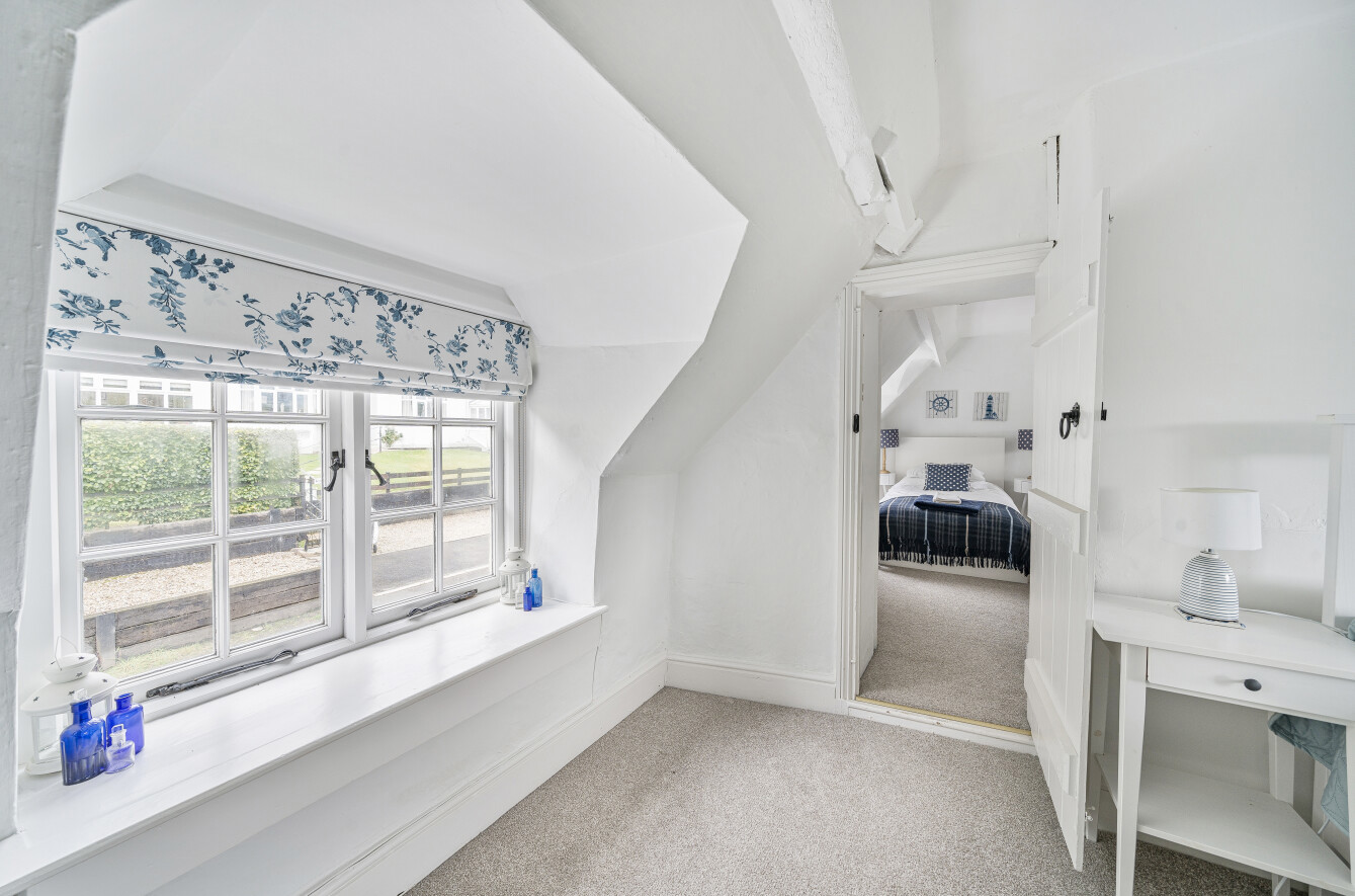 Stairs rise to the first floor, giving access to two interconnecting bedrooms, each served by its own staircase, along with a further family bathroom.