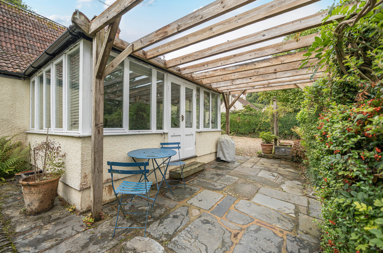The garden is a particular highlight of the property, with a generous lawn to the rear, enclosed by mature hedging and complemented by a variety of herbaceous trees and shrubs.