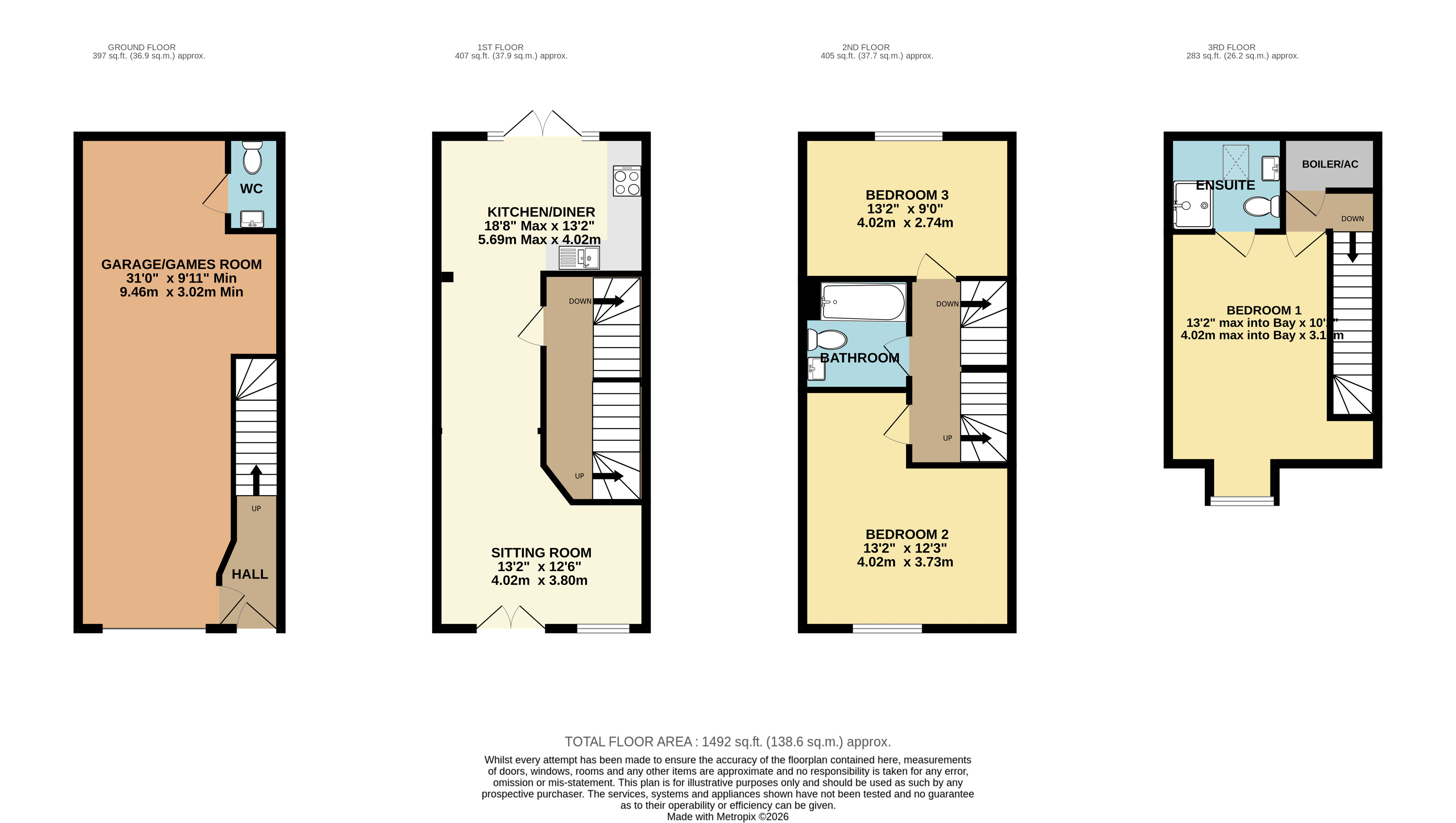 Arranged over four floors the accommodation in brief comprises; reception hall with door into the integral garage/games room with roller door and separate W.C. A staircase from the hall leads to the first floor landing and the open plan style living space with timber effect LVT flooring. The sitting room features a Juliet balcony with coastal views, dining area which open into a fitted kitchen with double glazed doors to the garden. The kitchen is fitted with a modern range of base and wall units with square edge work tops, stainless steel one and a half bowl single drainer sink unit, integrated oven, gas hob with extractor canopy, dishwasher and washing machine.
