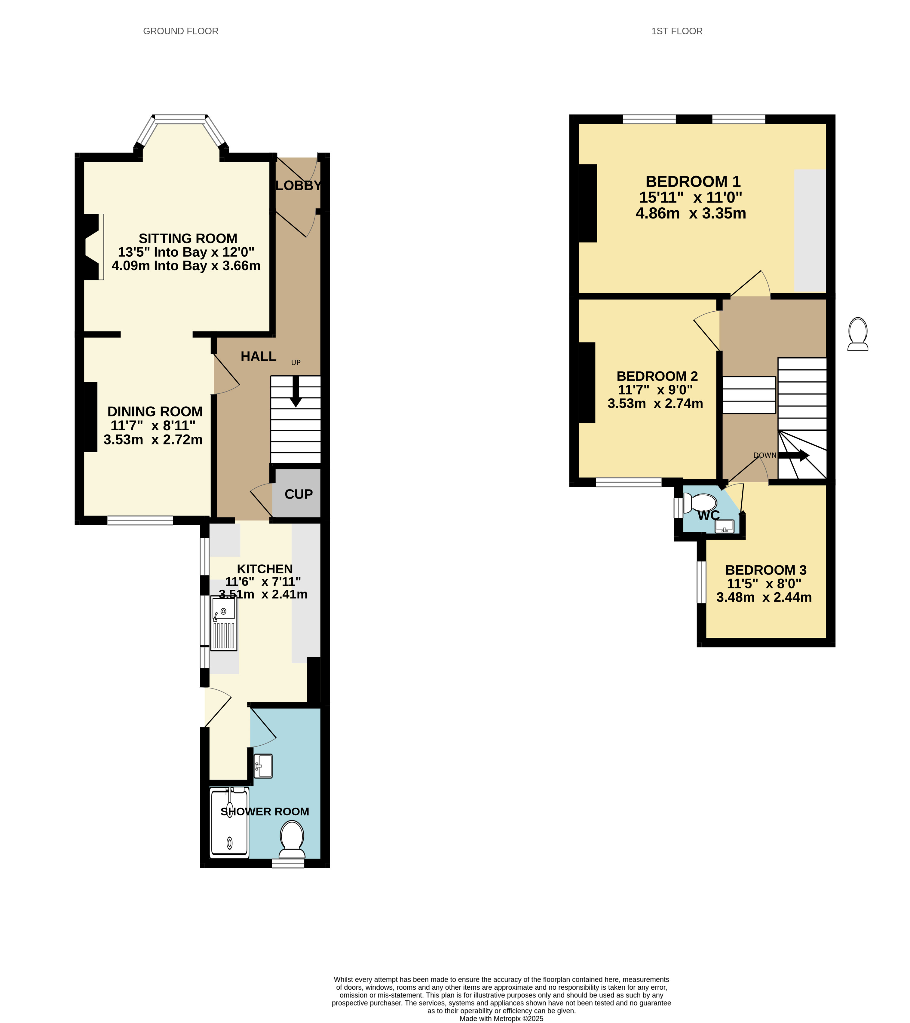 Bedroom 3 11'5" x 8' (3.48m x 2.44m).
