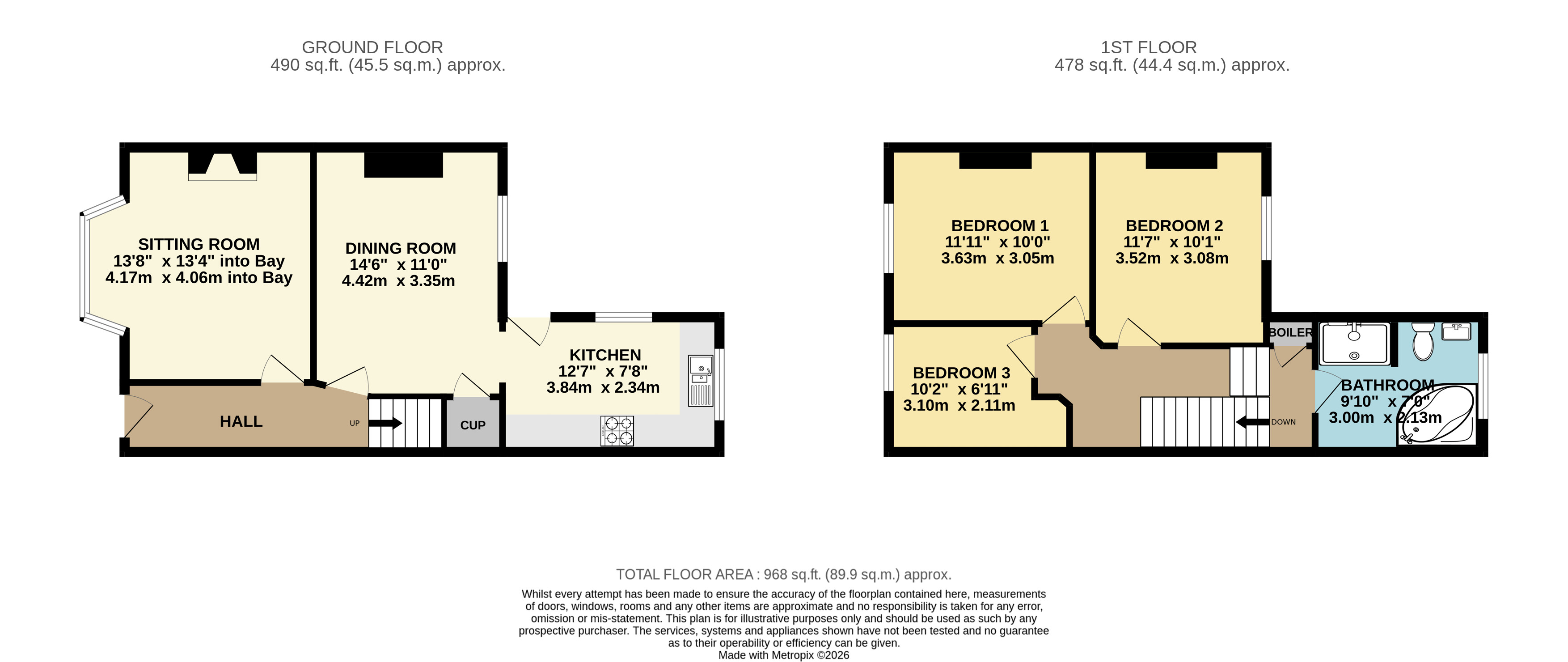 Bedroom 3 10'2" x 6'11" (3.1m x 2.1m).