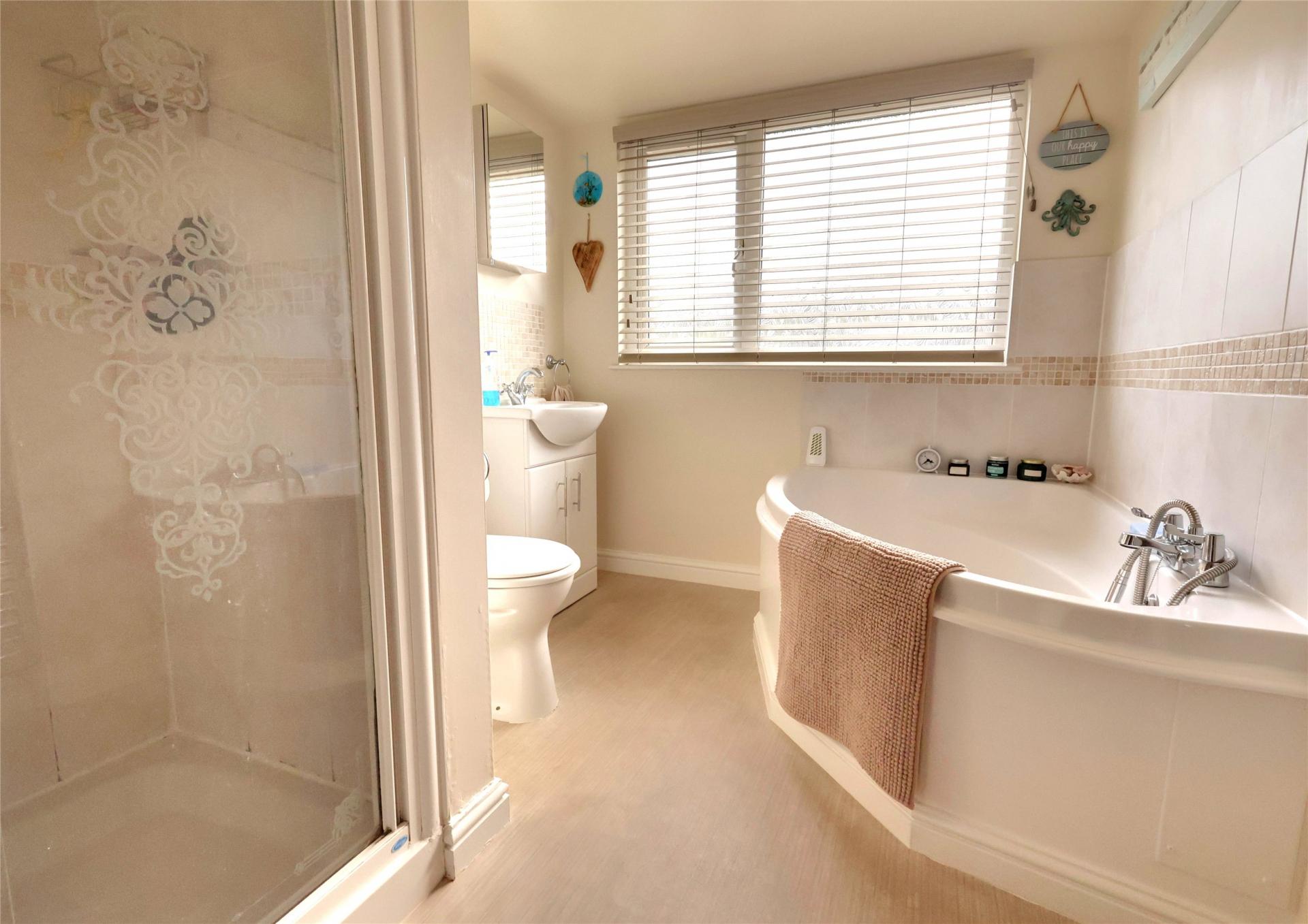 The split level landing incorporates a boiler cupboard and access hatch to the loft space, and provides access to three bedrooms, two of which retain attractive Victorian-style fireplaces. Completing the accommodation is a family bathroom fitted with a four-piece white and chrome suite comprising a corner bath, separate double shower enclosure, low-level WC, and pedestal wash hand basin.