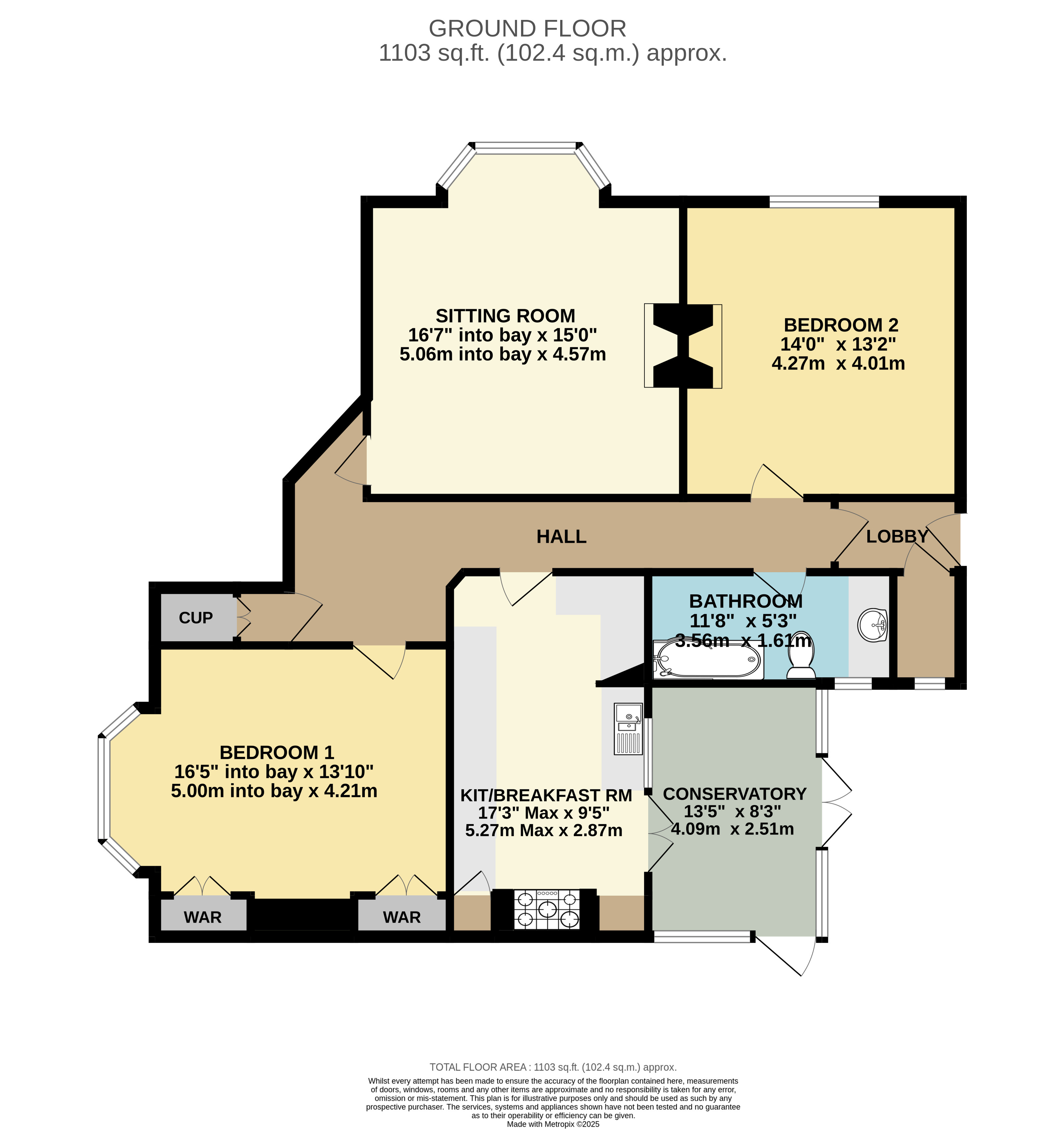 Conservatory 13'5" x 8'3" (4.1m x 2.51m).