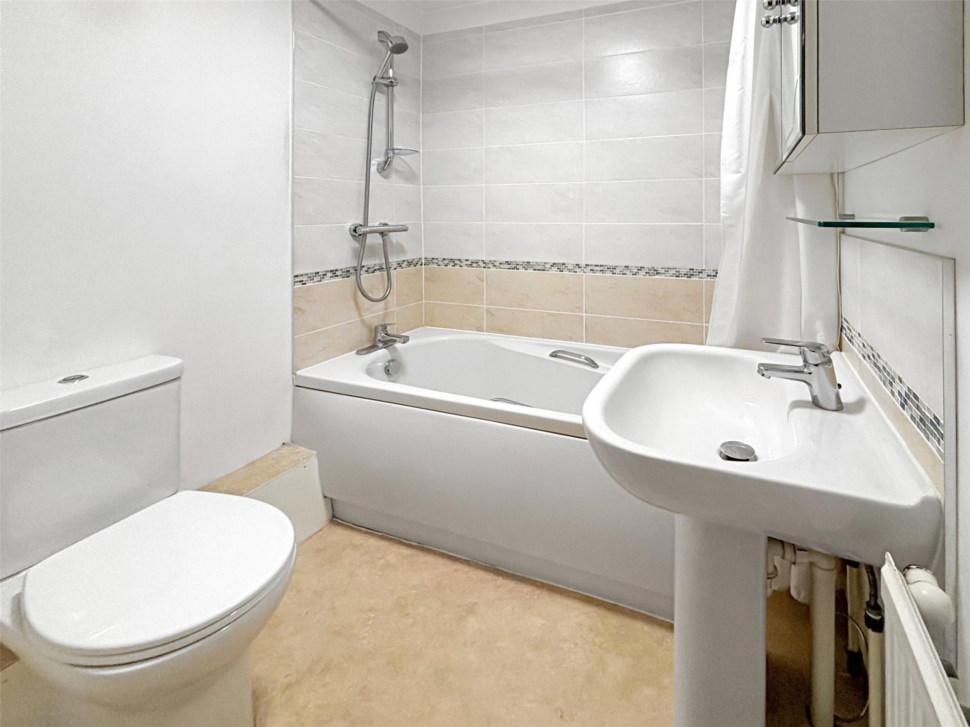 Completing the accommodation is the family bathroom, fitted with a panelled bath with mains-fed shower over, pedestal wash basin, and low-level WC.