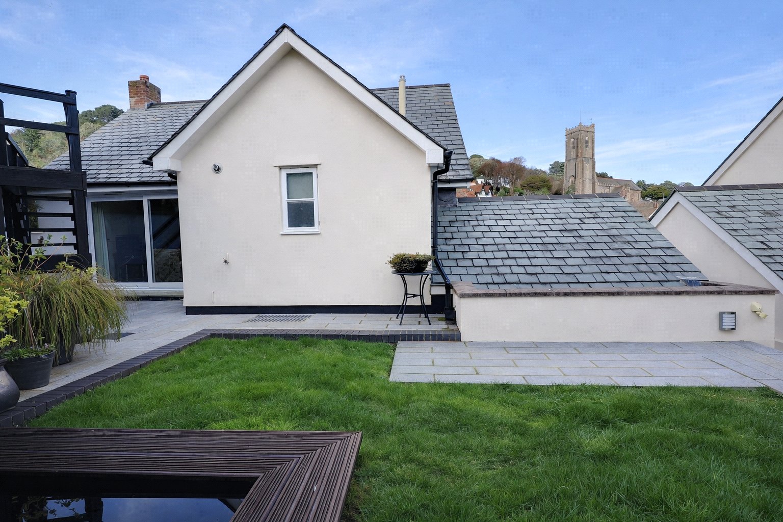 - Beautifully landscaped garden with seating & water feature