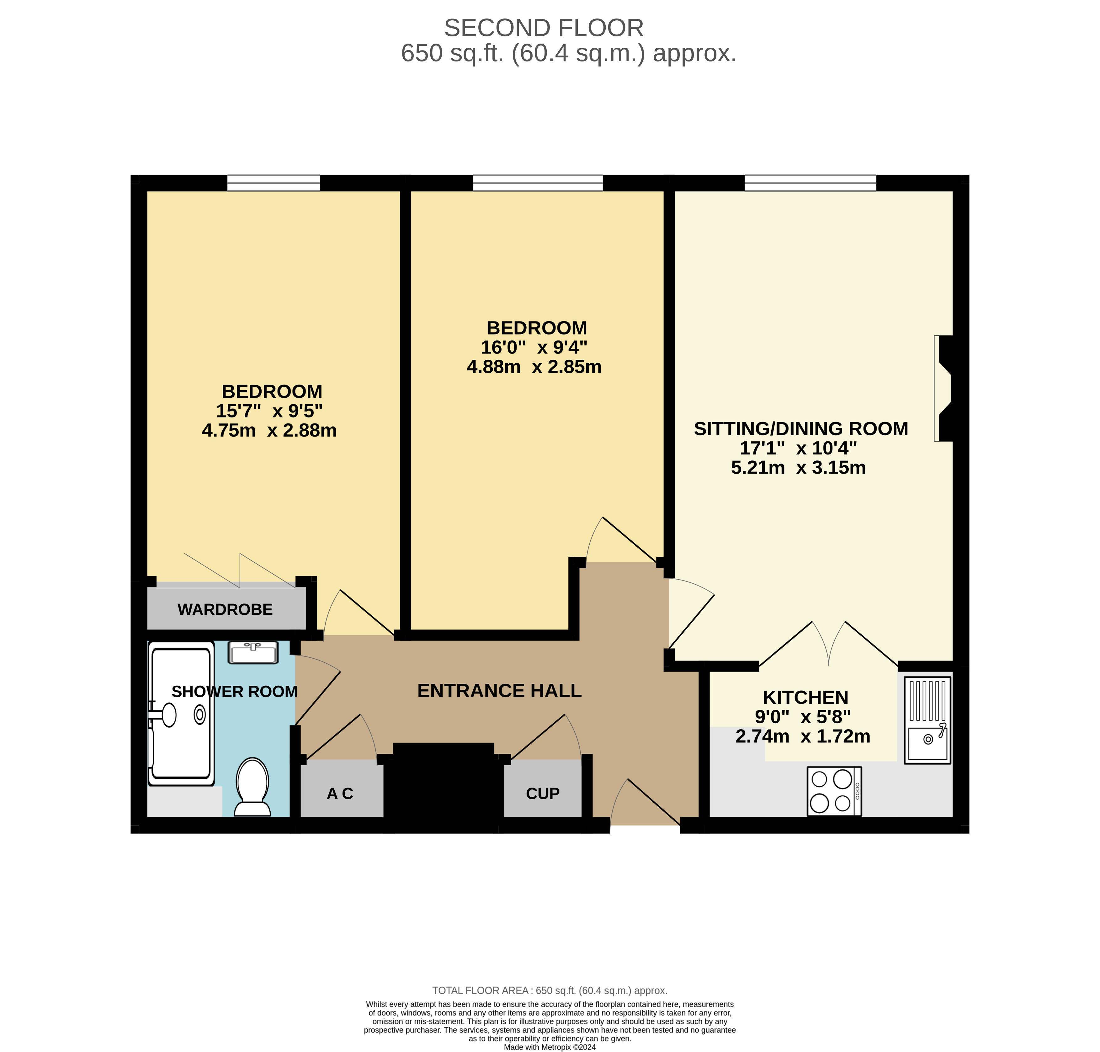 - 2 double bedrooms