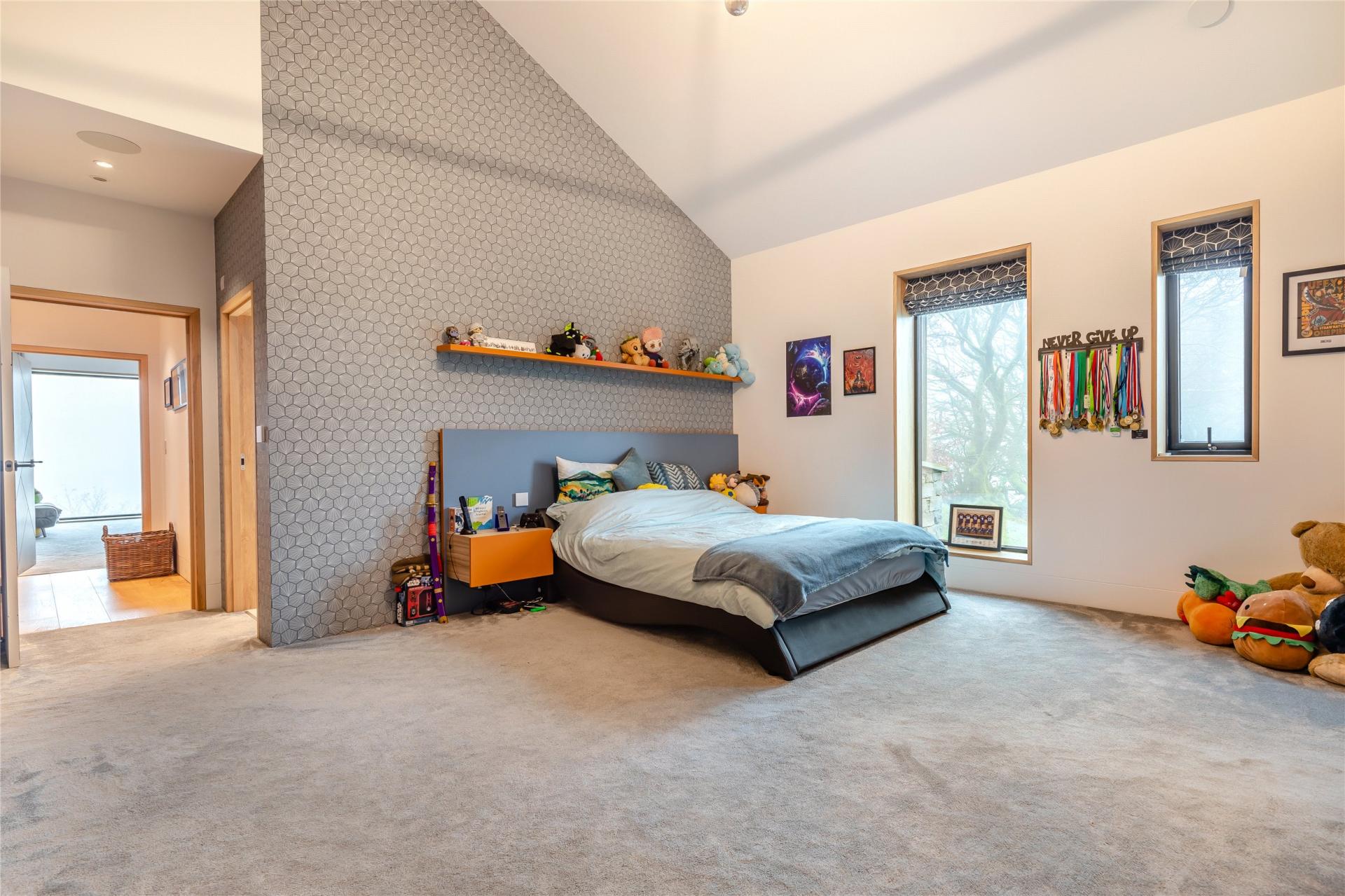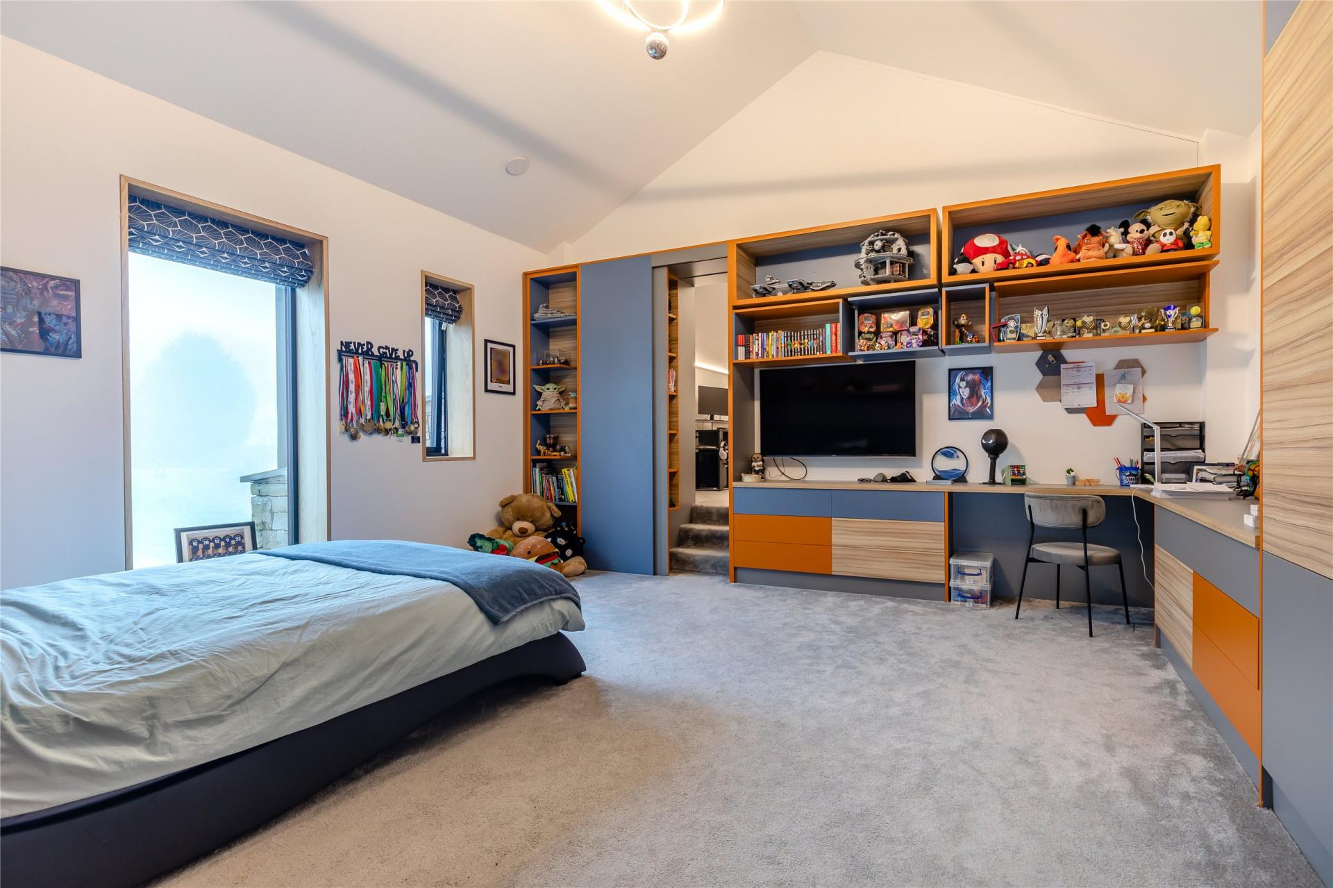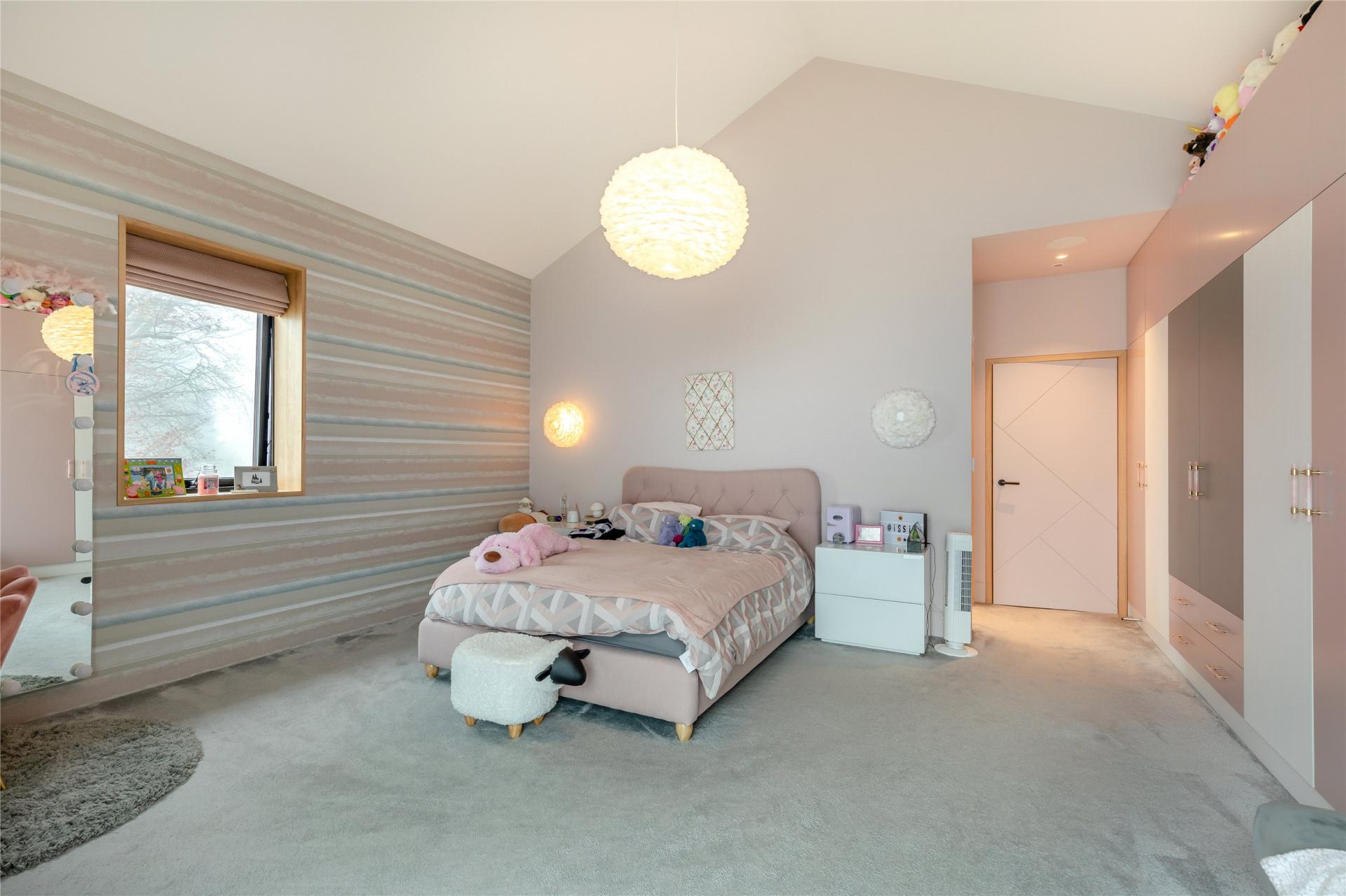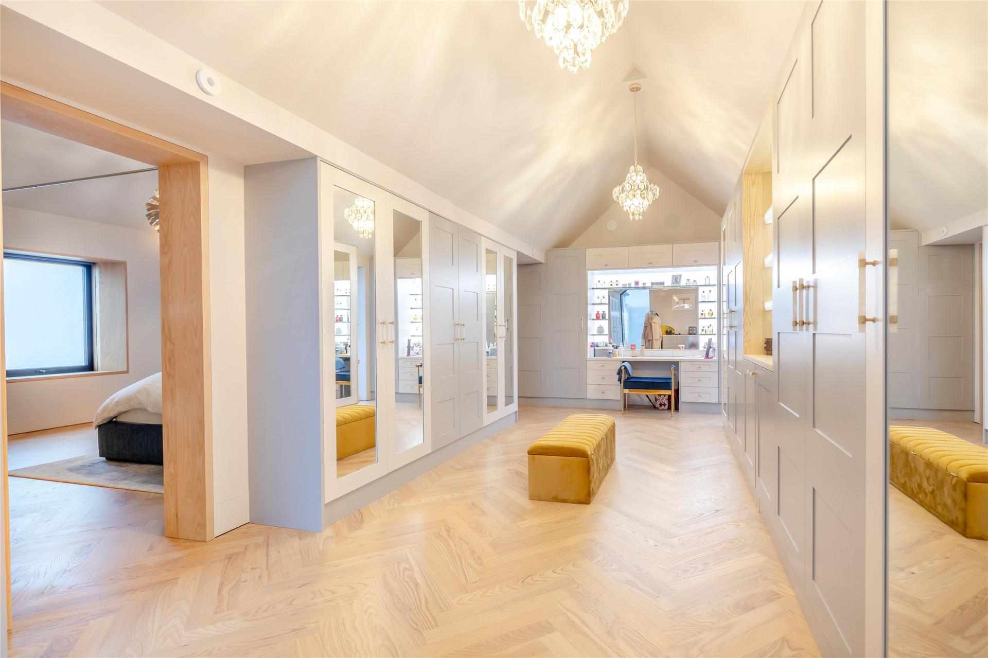 The design of the room has been carefully considered to maximize the stunning countryside views, which can be enjoyed from the comfort of the bedroom. In addition, the master bedroom is complemented by a well-designed dressing room, offering a bespoke range of fitted wardrobes for ample storage, making it a truly refined space for relaxation and everyday living.