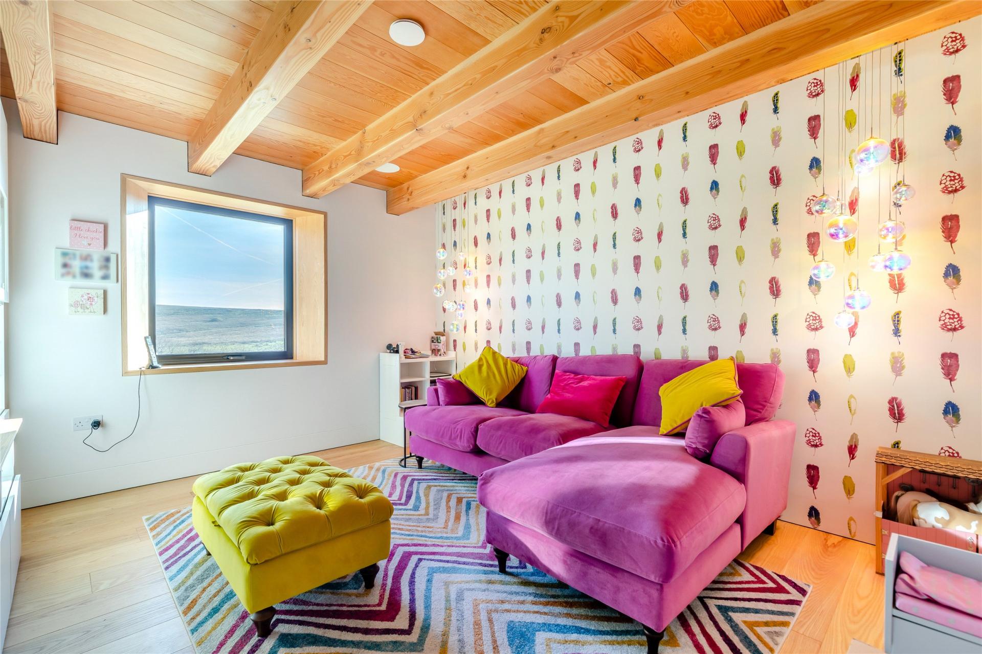 The house is further complemented by attractive gardens and grounds, which include a large lawn surrounded by mature hedges and trees, offering a sense of privacy and tranquillity. An extensive paved terrace at the front of the house provides an ideal space for outdoor dining and relaxation, while enjoying the wonderful moorland views. The gardens have been meticulously landscaped to feature manicured lawned areas, with a variety of seating spots where you can enjoy the sun and views. A large pond to the front adds a peaceful water element to the landscape, enhancing the overall aesthetic appeal.