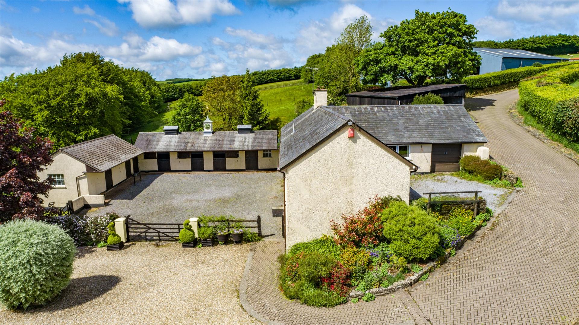 A range of modern agricultural buildings, including barns and stabling, support a variety