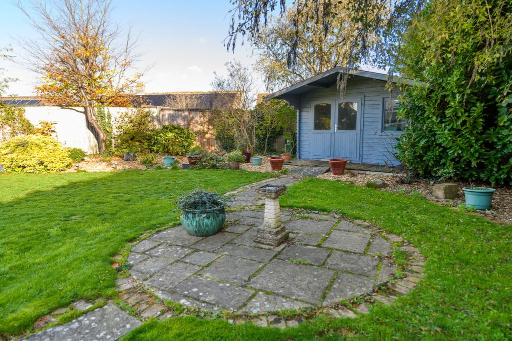 The house is set within surprisingly private gardens, screened by mature planting and featuring an attractive gated driveway with ample parking and access to the garage. The grounds include a sheltered courtyard, well-kept lawns and additional outbuildings such as a summer house, creating a lovely setting for outdoor entertaining or family use. This appealing property combines convenience, space and privacy in a sought-after location.