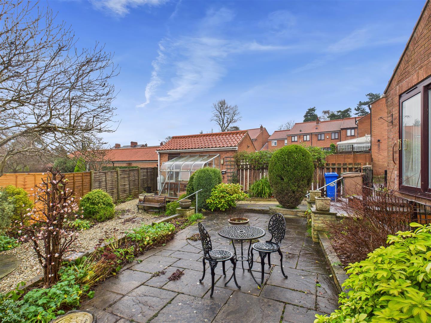 Outside - The property occupies a corner style plot with attractive garden areas extending to front and side of the property which have been largely set out for ease of maintenance. The rear garden is extensively paved with further gravelled area interspersed with shrubbery. There is also a greenhouse attached to the garage. A single garage and driveway form part of the property.