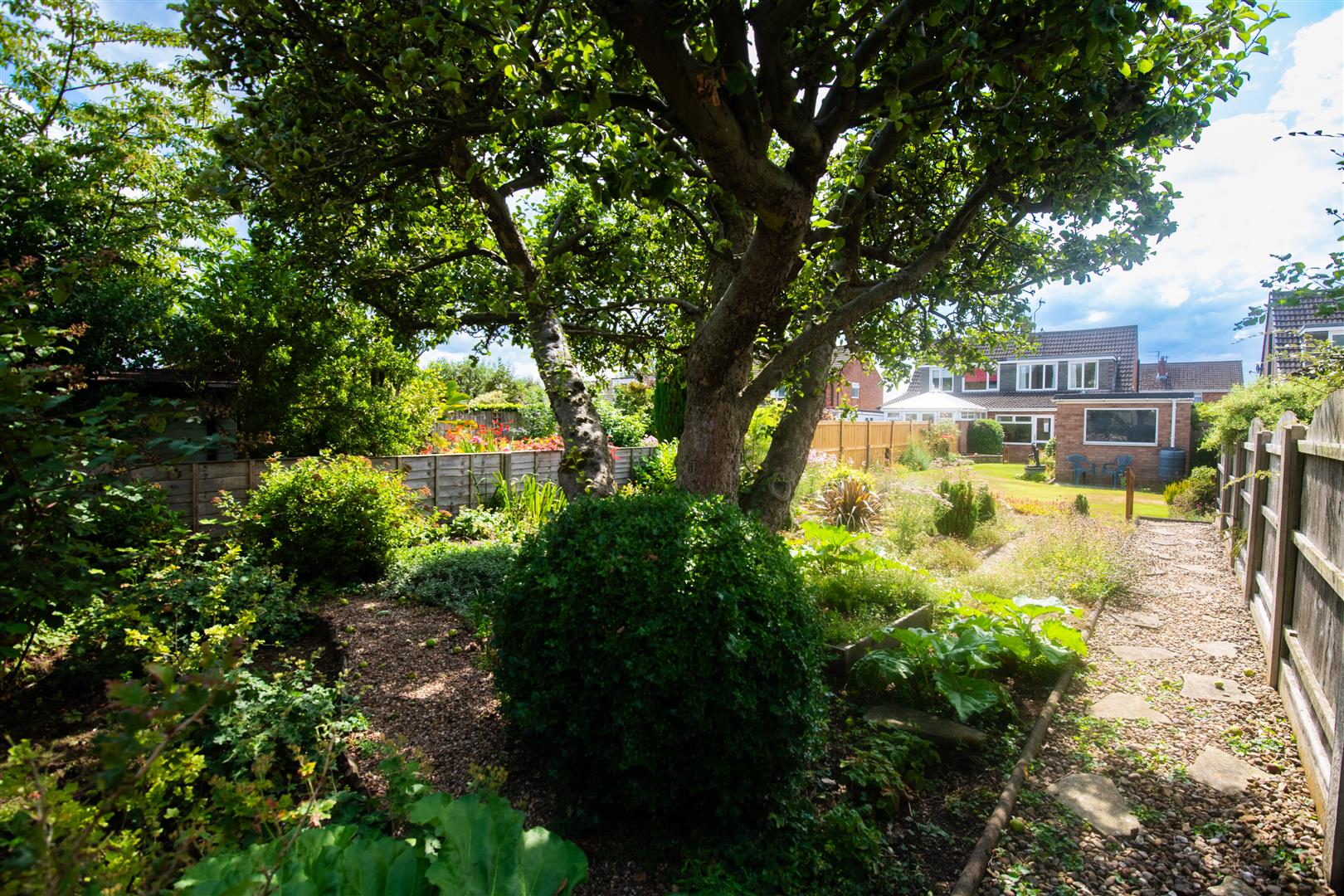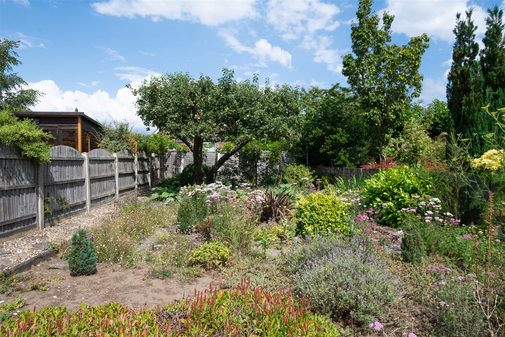Outside - Externally, a gravelled ornamental garden graces the front, and a gravelled side drive provides ample parking, leading to the detached brick garage with an automated roller door and potting/workshop bench. Beyond a further gravelled area directly at the rear of the property lies the fantastic rear garden. This impressive space features a generous lawn, mature shrubbery, and attractive trees, and a delightful re-wilding/fruit and vegetable garden area, offering a blend of both manicured sections and natural beauty, all secured by fencing