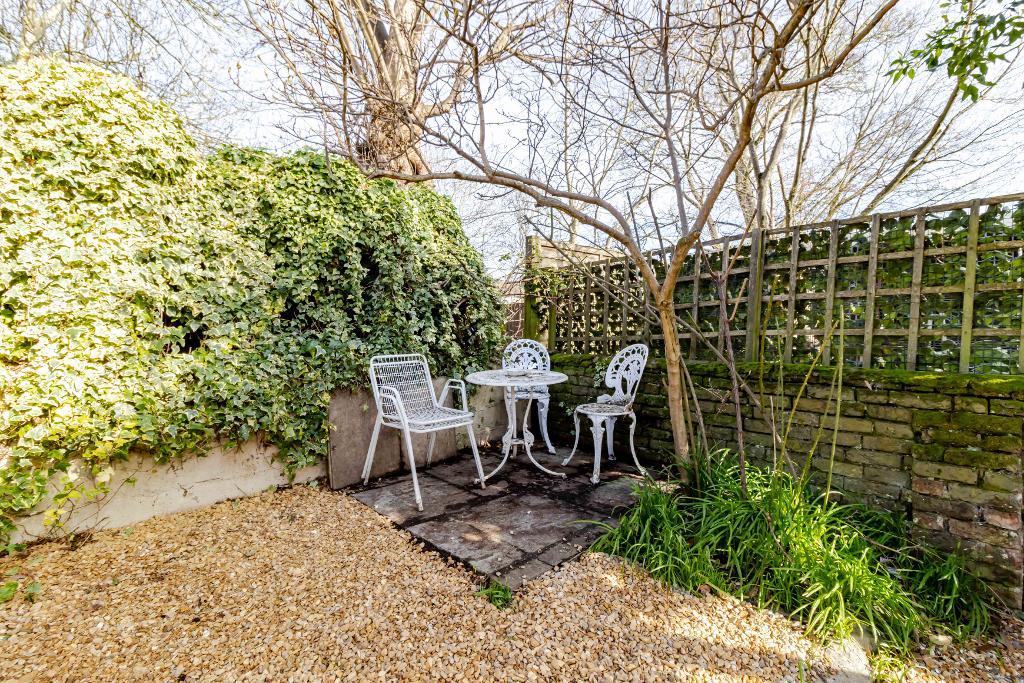 The property features two generously sized double bedrooms and a spacious open-plan living and dining area, ideal for both relaxing and entertaining. To the rear is a beautiful, established garden with mature trees including magnolia, Californian lilac, apple, and plum. Two York stone patios further enhance this attractive outdoor space.