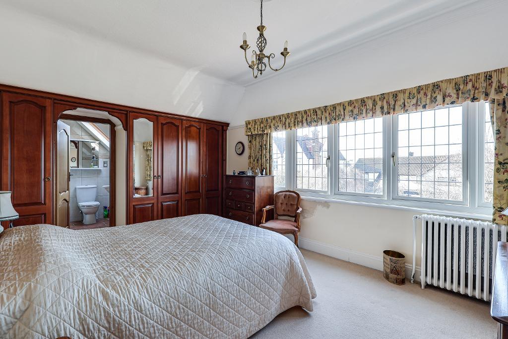 A grand landing on the first floor leads to five well-proportioned bedrooms. The principal bedroom is a particularly impressive retreat, complete with a large en-suite bathroom and a full range of fitted wardrobes. In addition, there is a generous guest suite with its own en-suite, providing ideal accommodation for visitors or older children. A separate family bathroom serves the remaining bedrooms.