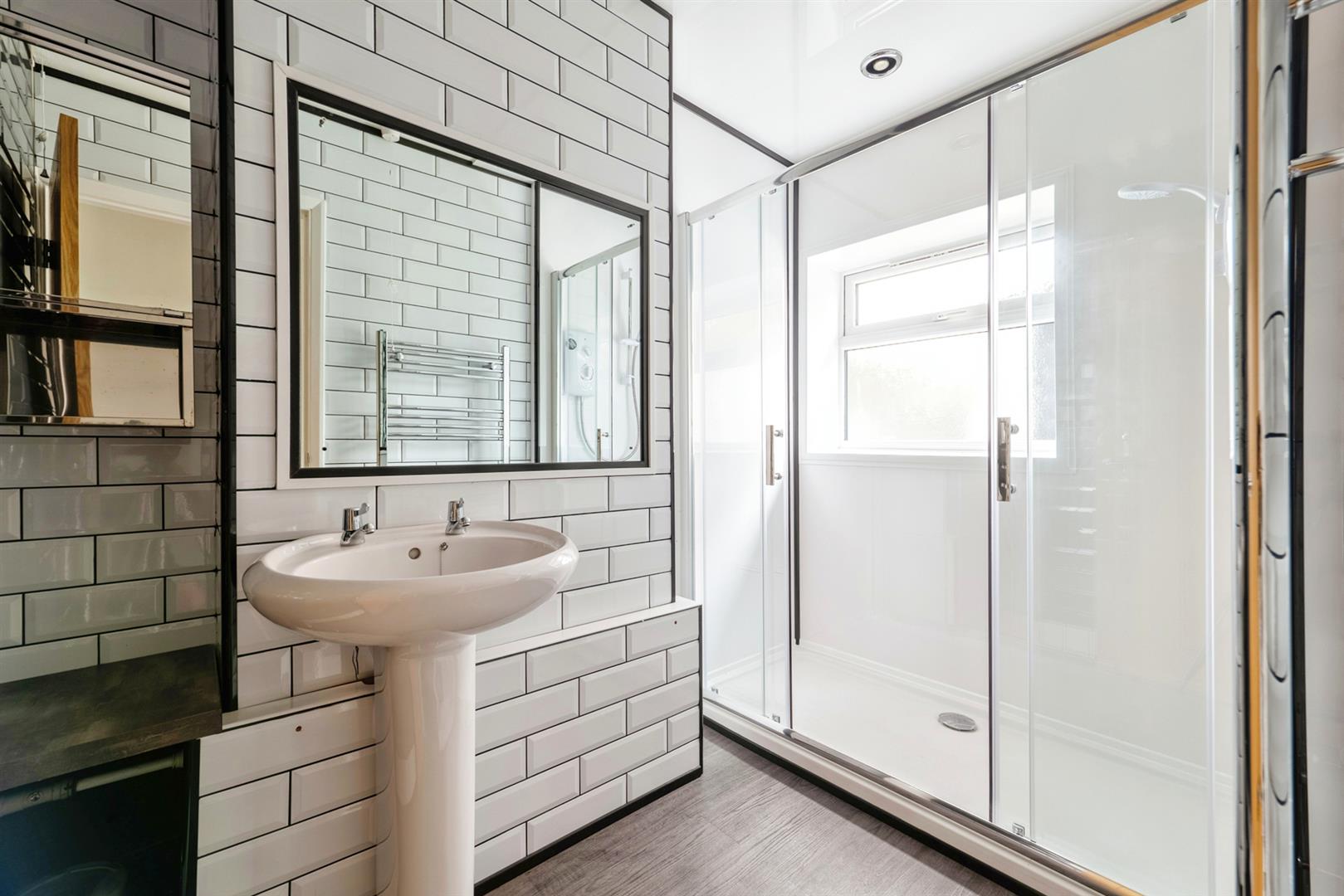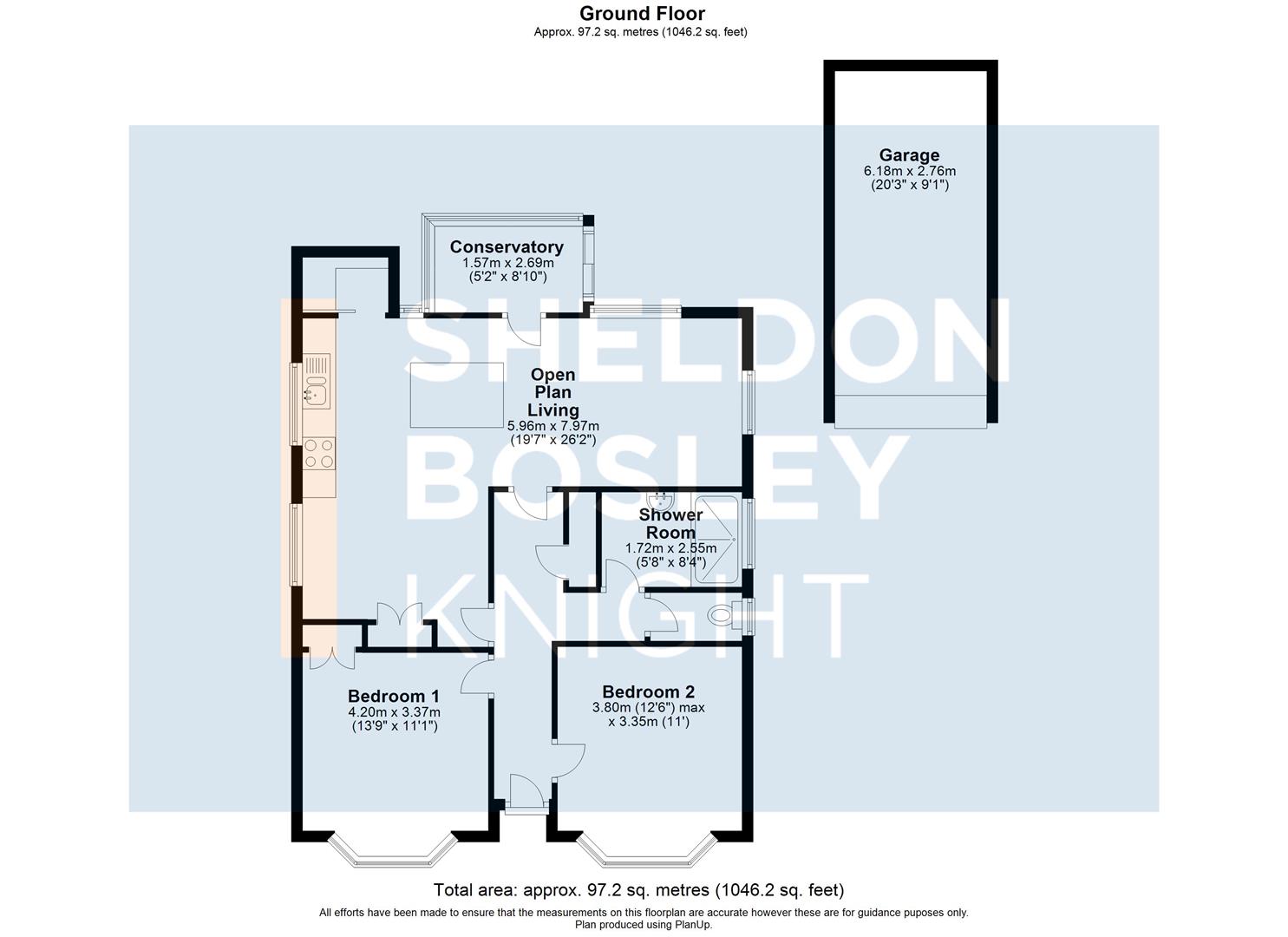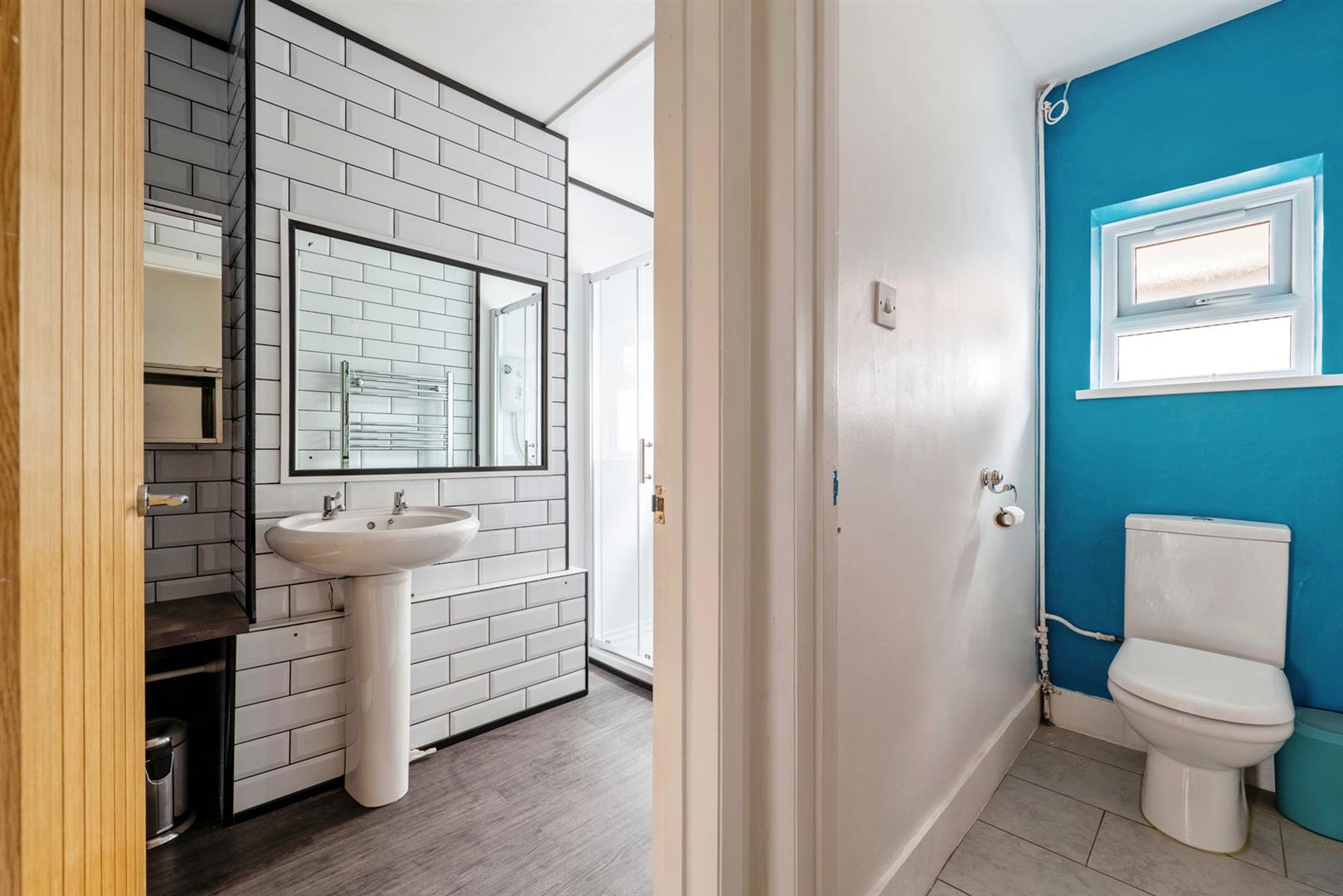 The property comprises; hallway, two double bedrooms to the front with bay windows and built in storage in the main bedroom. To the back of the property is a spacious open plan living area with modern, well-equipped kitchen offering a fantastic living space. The kitchen space also offers good storage with pantry and built in cupboard. The bathroom is split into seperate w.c. and shower room and there is a useful conservatory overlooking the rear garden.