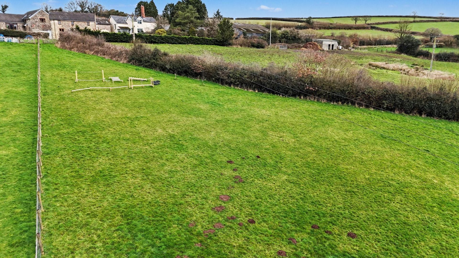 - Private Garden and Paddock – Fully enclosed garden with level lawn, gravel entertaining area, and approximately 1-acre south-facing paddock.