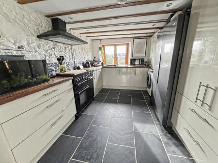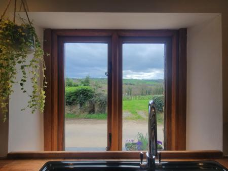 - Fitted Kitchen with Views – Modern yet rustic kitchen with wooden worktops, exposed beams, integrated appliances, and large window overlooking the valley.