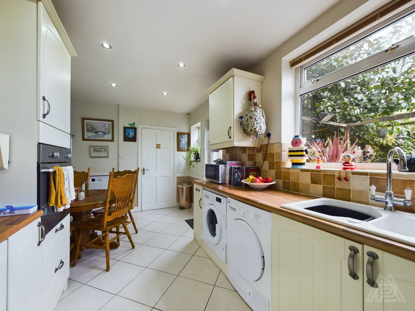 Upstairs, discover three generously sized bedrooms, one featuring built-in wardrobes, along with a family bathroom and a separate WC. Outside, enjoy a mature rear garden with storage, side access, and a driveway for up to two cars.