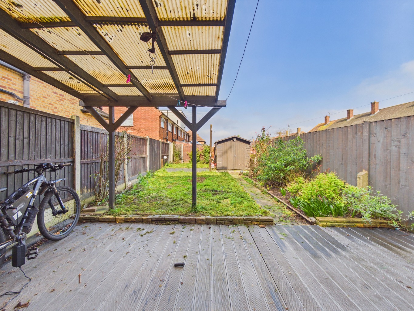 - PRIVATE REAR GARDEN WITH SIDE ACCESS , STORAGE AND COVERED DECKING AREA