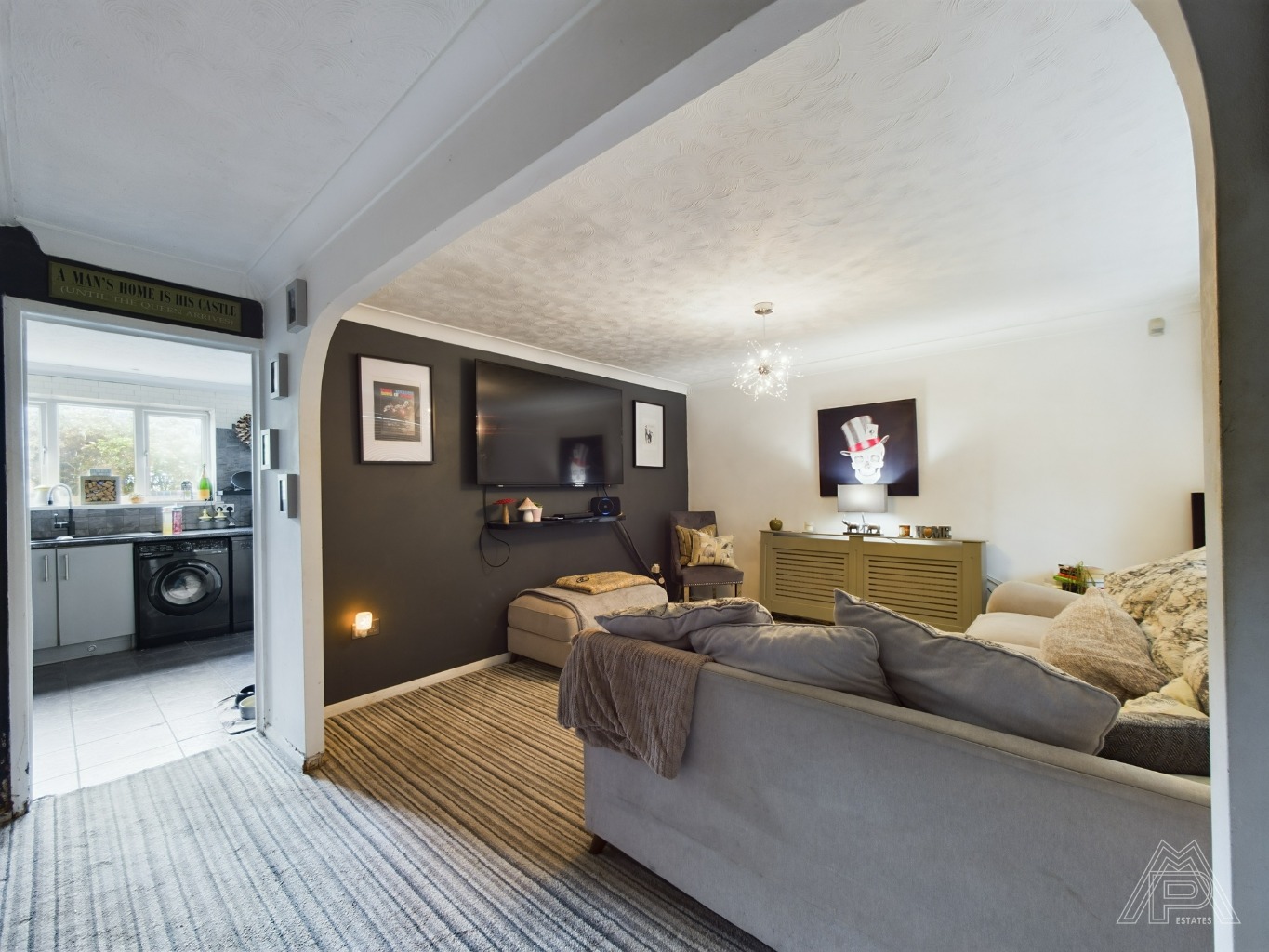 Upon entering the house, you'll be greeted by a welcoming hallway that leads into the bright and spacious reception room. The neutral decor and abundance of natural light create an inviting atmosphere, making it the ideal space for relaxing or entertaining guests.