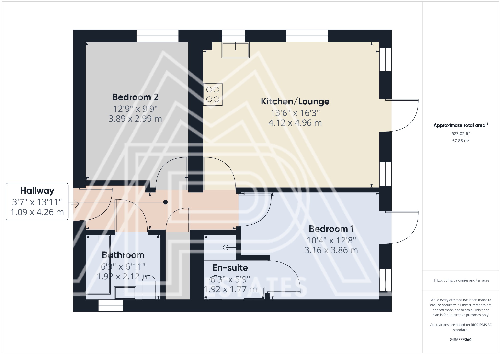 This modern 2 bed, 2 bath flat features built-in wardrobes, an open-plan kitchen/lounge, en-suite, elegant bathroom, and...