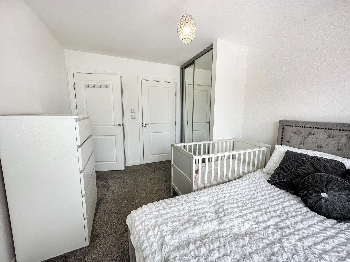 In addition to the en-suite, there is a well-appointed family bathroom, offering a stylish and contemporary design. The modern fixtures and fittings in both bathrooms elevate the overall aesthetic of the property.