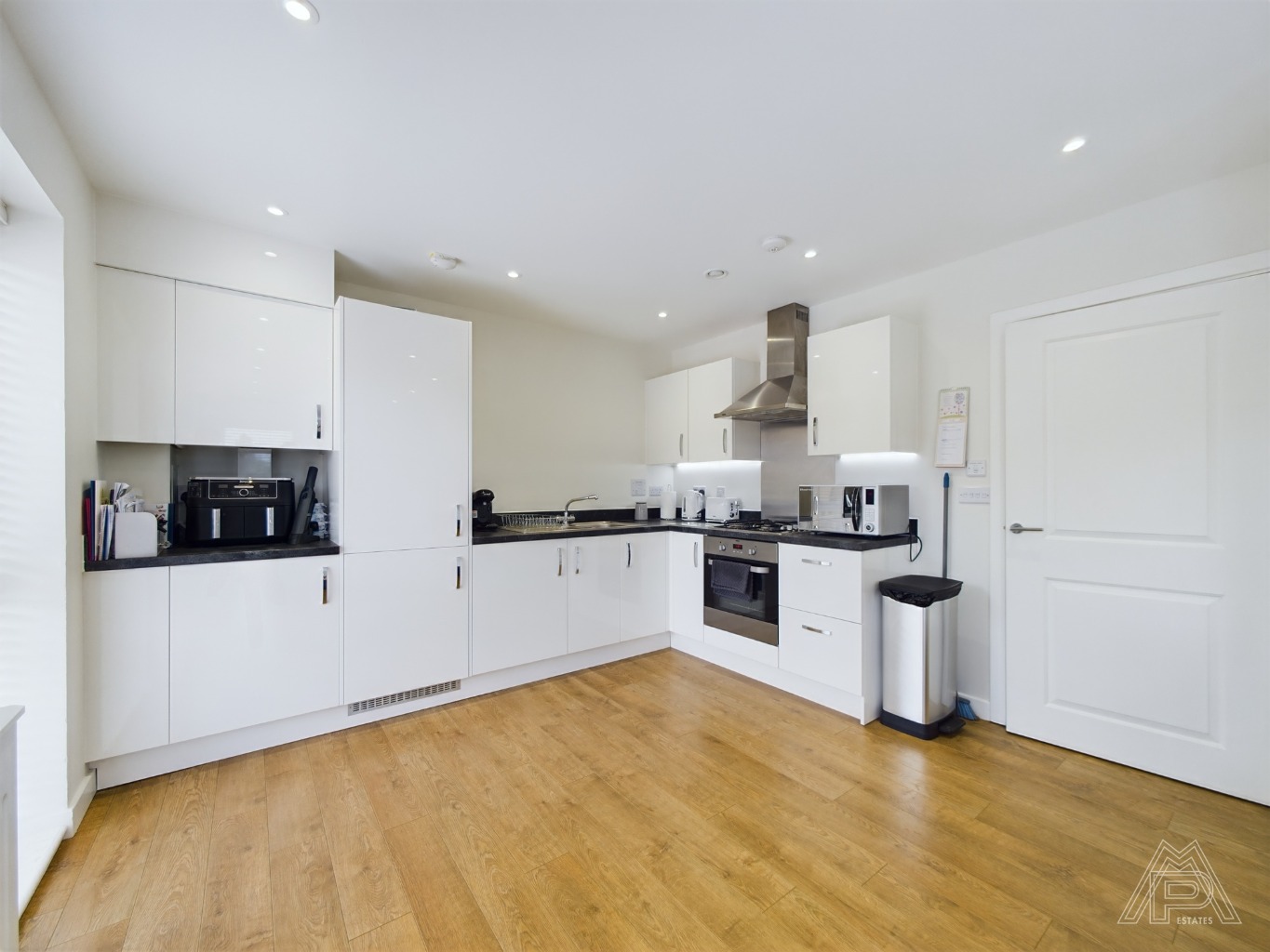 The open-plan layout seamlessly connects the living area with the fully-fitted kitchen. With high-quality appliances, ample storage space, and sleek countertops, this kitchen is a dream for any aspiring chef. It offers everything you need to prepare delightful meals for family and friends.