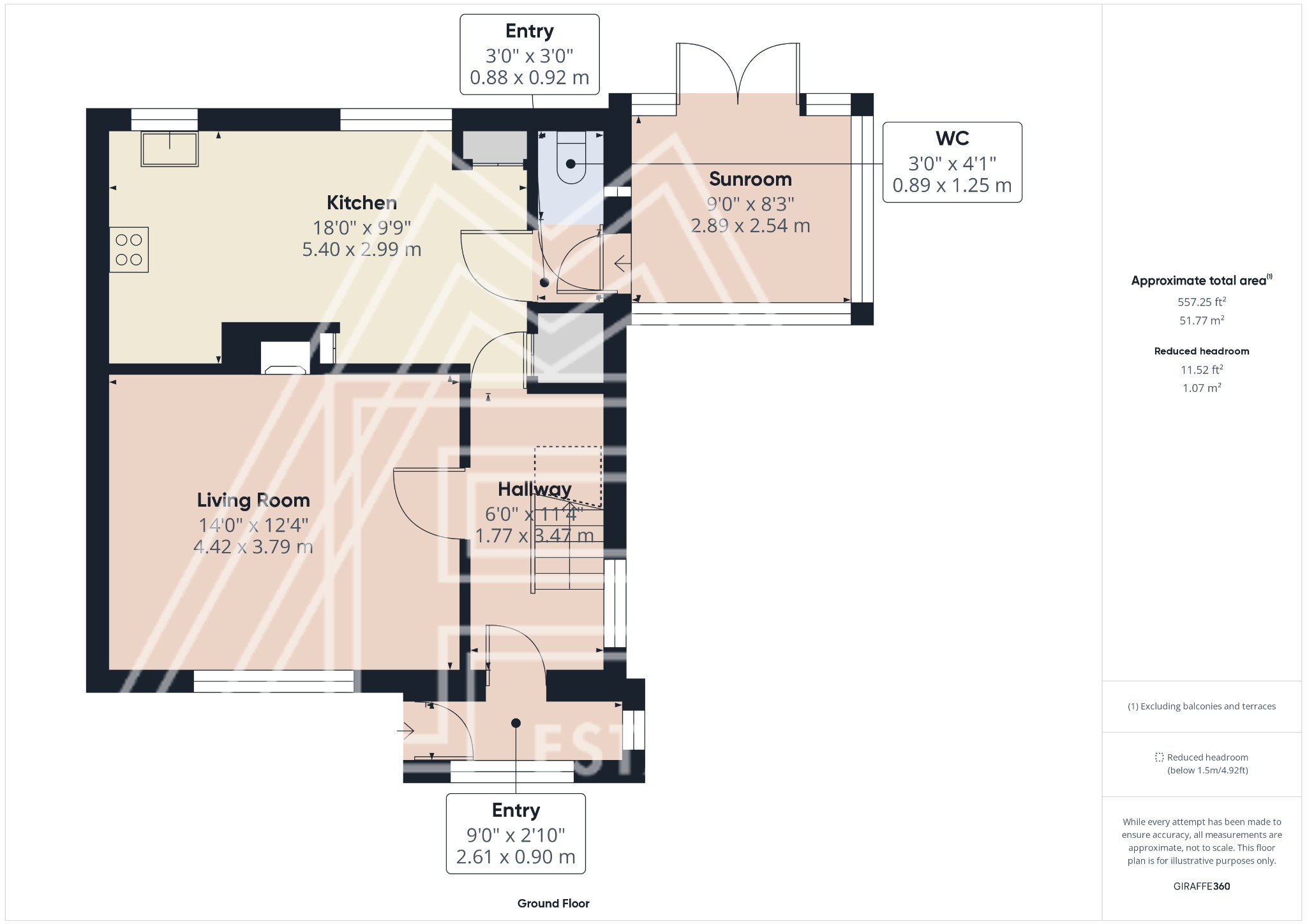 The property boasts a well-equipped kitchen that includes built in oven and ample storage space. It is conveniently located adjacent to a downstairs W.C, providing convenience and ease of use for both residents and guests.