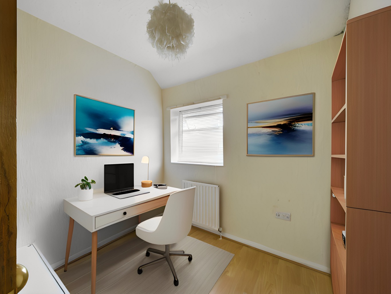 Ascend to the upper level to discover three generously sized bedrooms, two of which are enhanced with built-in storage along with a sleek modern bathroom. Outside, the property benefits from a private rear garden with side access, coupled with off-street parking.