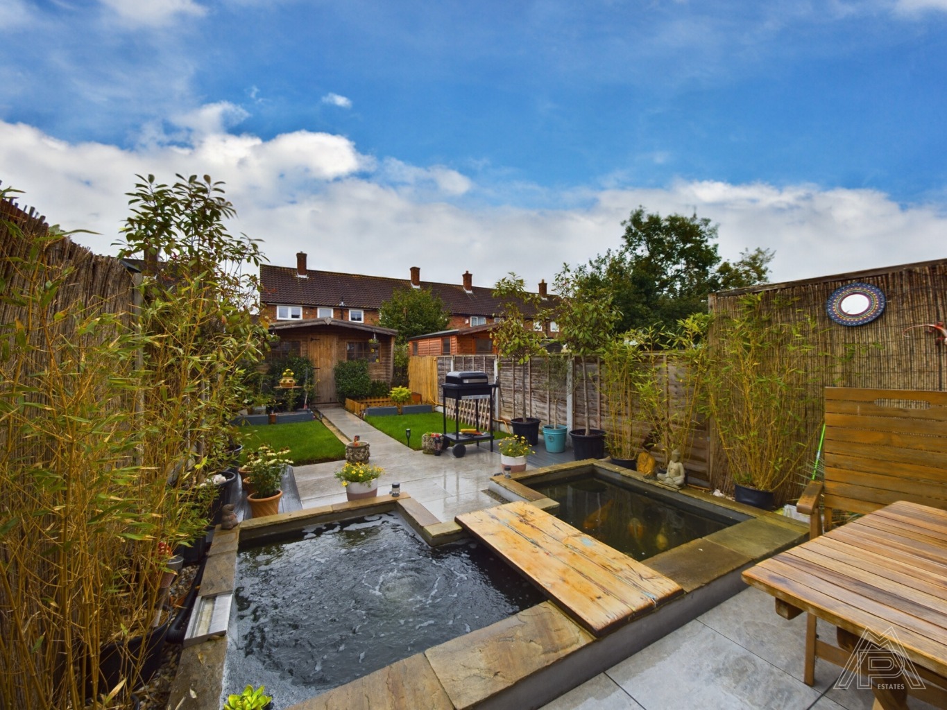 - RELAXING POND AND PATIO AREA