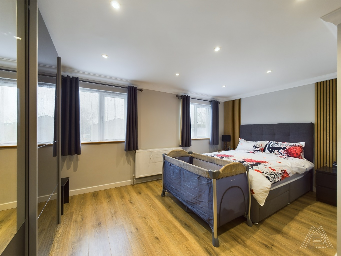 Moving upstairs, the high-quality decor continues with three well-proportioned bedrooms – two doubles and a versatile single room that can also serve as office space. The modern family bathroom suite is adorned with elegant fixtures and fittings.