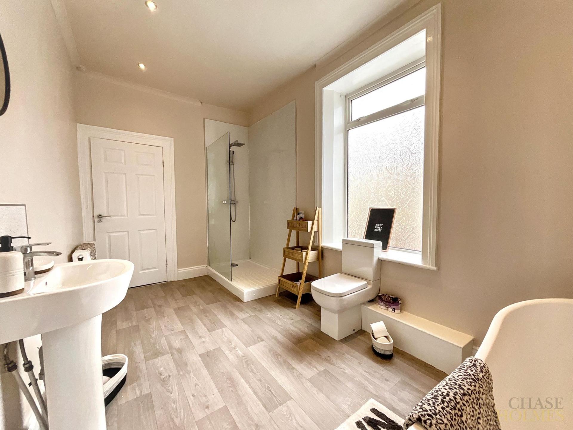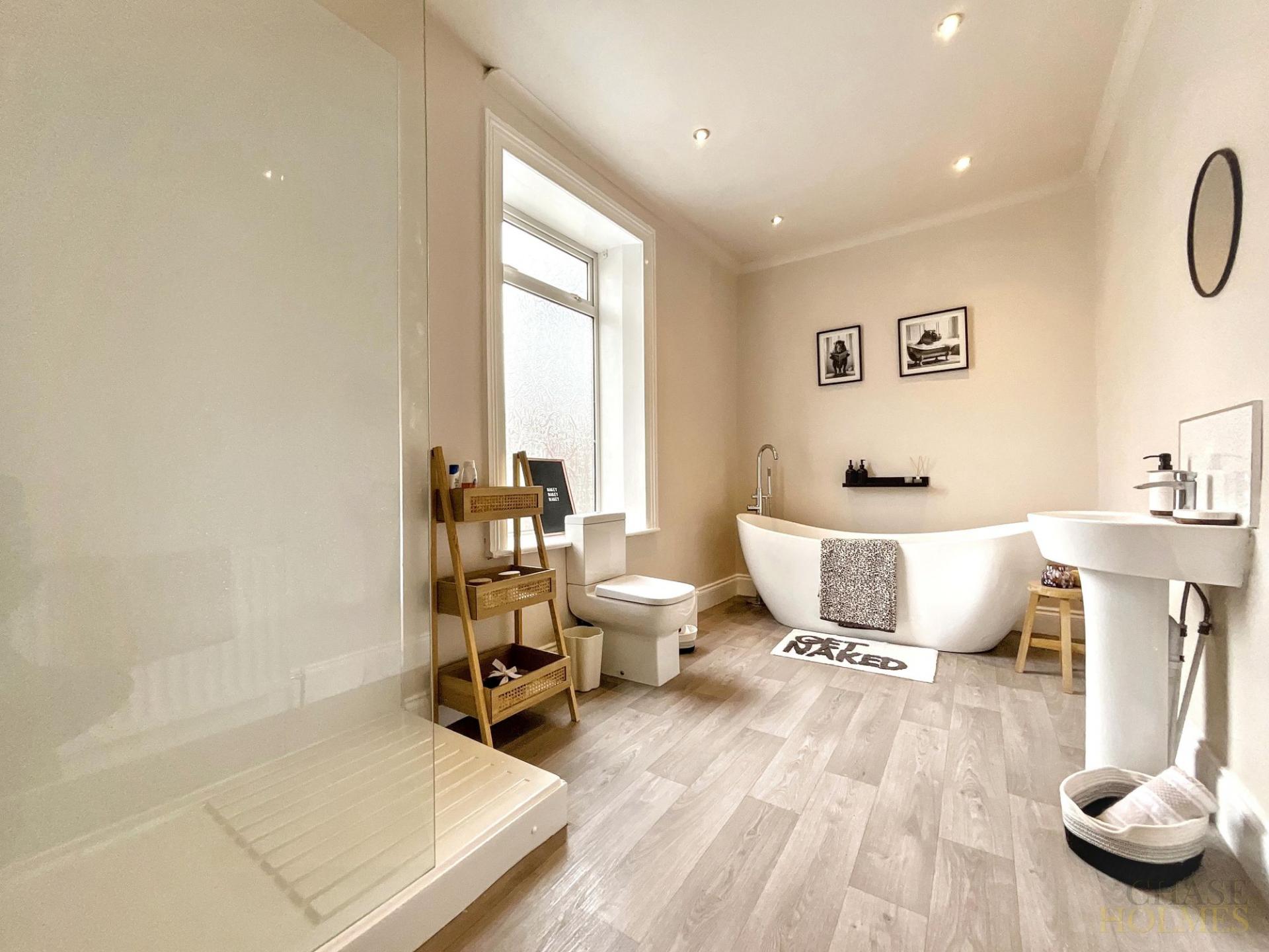 Upstairs, the stylish bathroom is finished to a high standard, featuring a luxurious walk-in shower and a freestanding bath, creating a spa-like retreat for relaxation. Each of the three well-proportioned bedrooms benefits from ample natural light and tasteful décor, providing comfortable and peaceful spaces for rest.