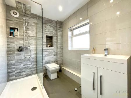 Both bedrooms are generously sized, benefiting from the same spacious proportions and serene ambience found throughout the home. The bathroom has been finished to a high standard, featuring a contemporary walk-in shower with stylish fixtures and fittings, offering a luxurious retreat for relaxation.