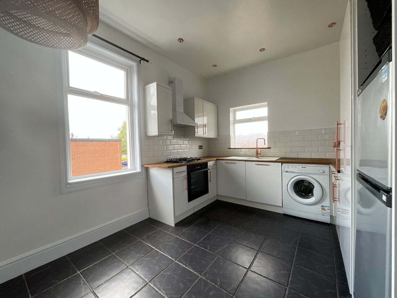 Kitchen (4.25 x 3.05)Features: UPVC double glazed window x 2, radiator, range of wall and floor units, contrasting work surfaces, oven, hob, extractor hood, plumbing for washing machine, sink with mixer tap and drainer, splash back tiles, tiled floor, spotlights to ceiling.