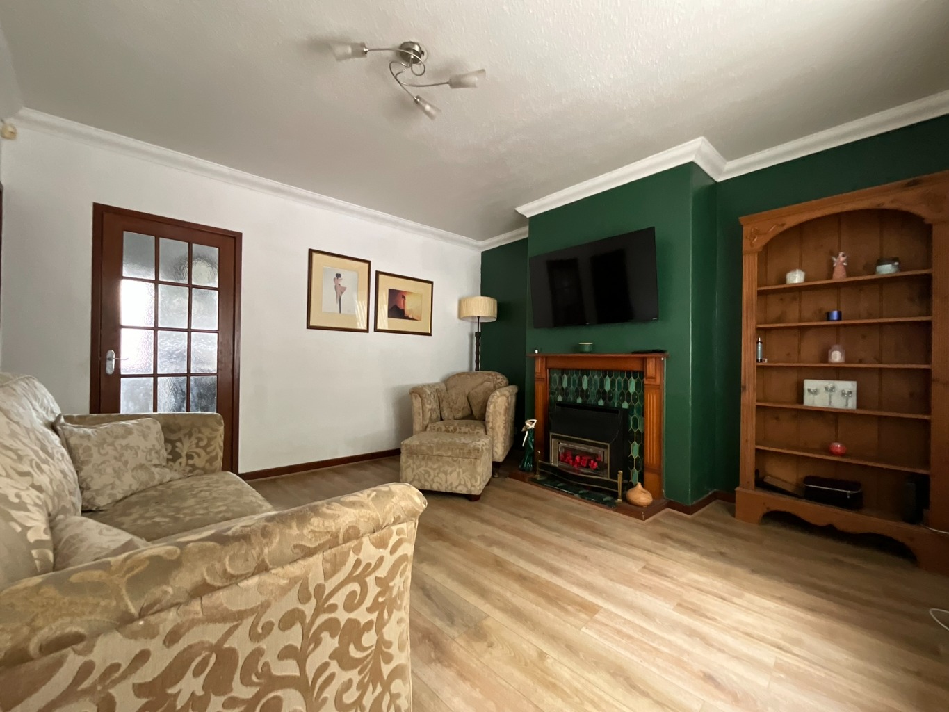 LoungeFeatures: coving to ceiling, UPVC double glazed window, radiator, laminate wood flooring, feature fireplace.