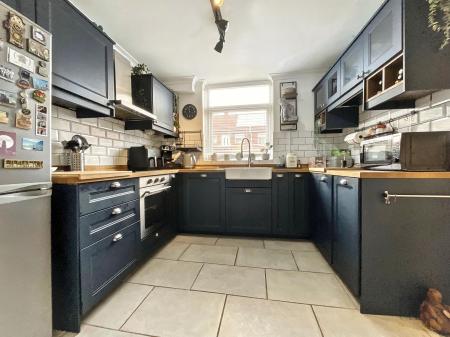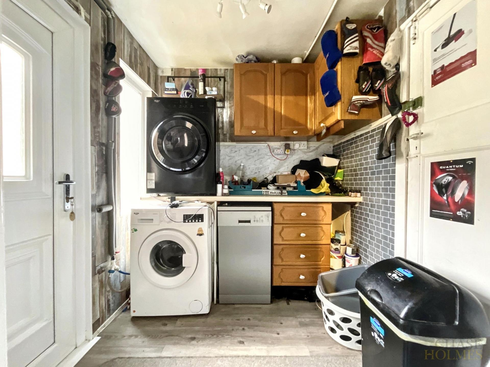 The contemporary kitchen is well-designed with sleek units, plenty of worktop space, and an integrated oven, providing a practical and stylish setting for everyday cooking. Just off the kitchen, a separate utility room offers additional storage and laundry facilities, helping to keep the main living areas tidy and organised.