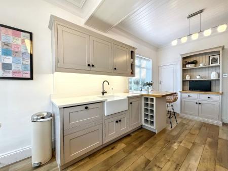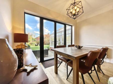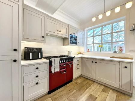 Adjacent to the kitchen, the elegant conservatory offers panoramic views of the landscaped garden, creating a tranquil space for morning coffee or evening relaxation.