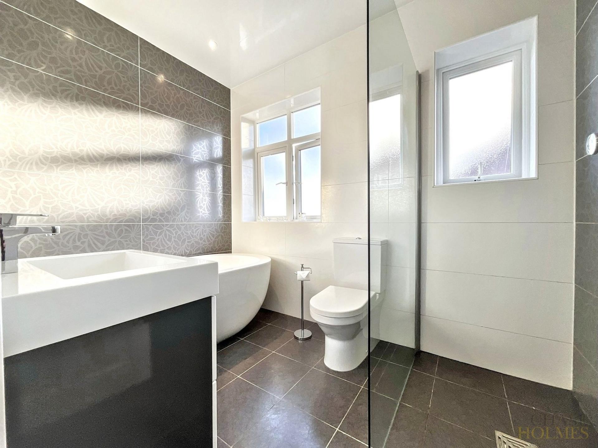 Upstairs, generously sized bedrooms provide ample space for family or guests, while the luxurious bathroom boasts a freestanding bath and a walk-in shower, designed for ultimate relaxation.