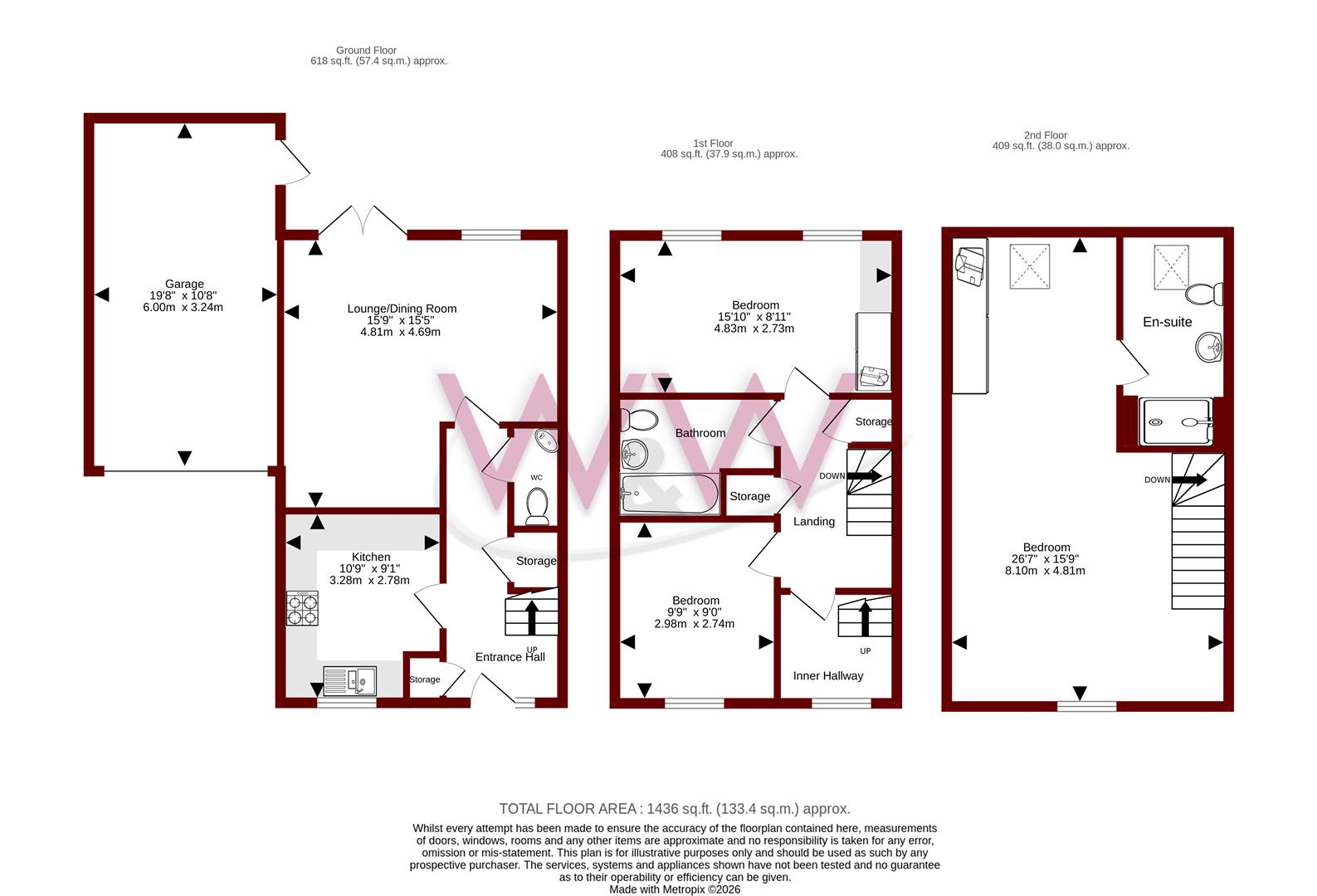 Integrated appliances include oven, hob, fridge/freezer, dishwasher & space/plumbing for washing machine
