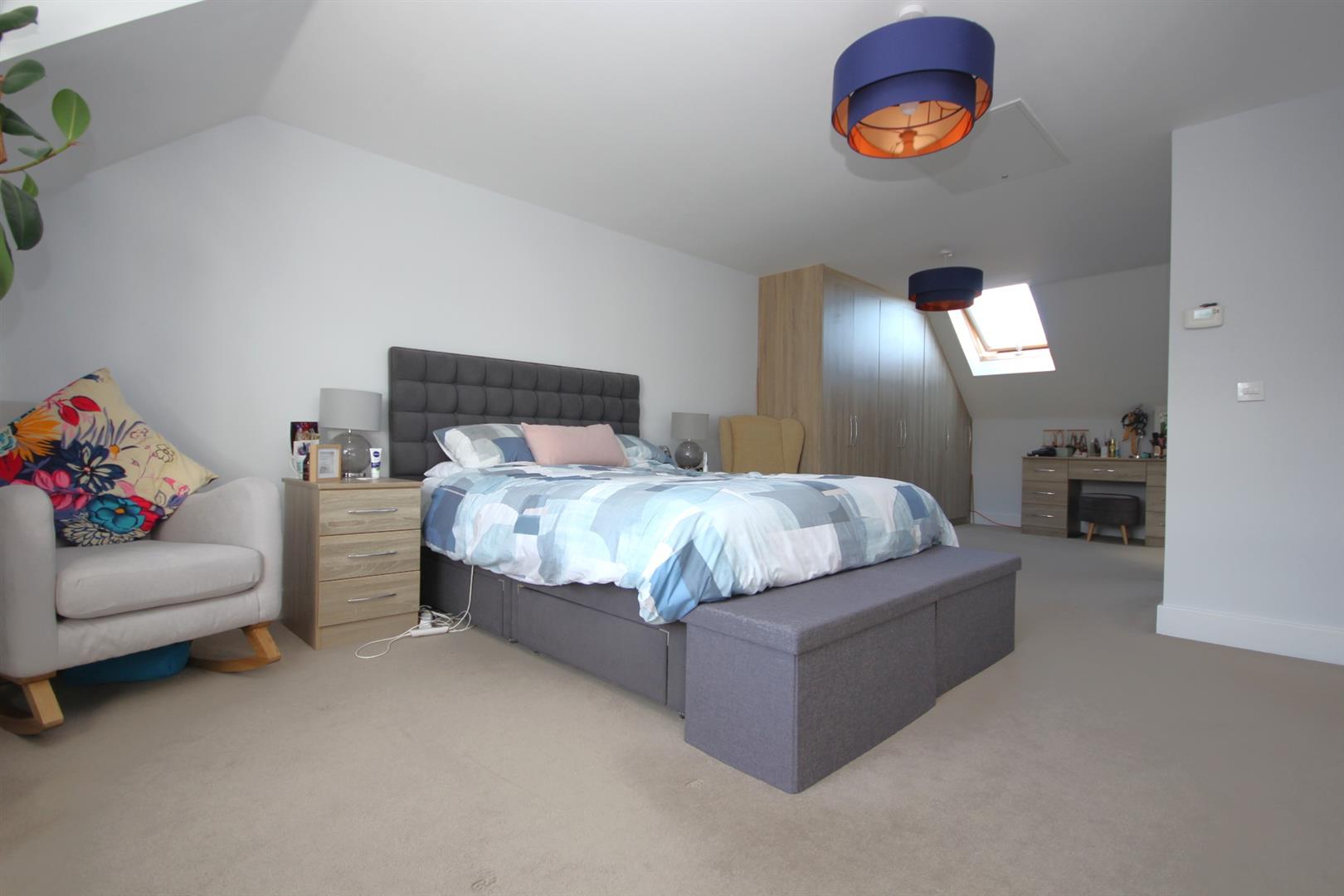 Impressively sized 26'7ft dual aspect main bedroom to the top floor enjoying fitted wardrobes, Velux window & en-suite
