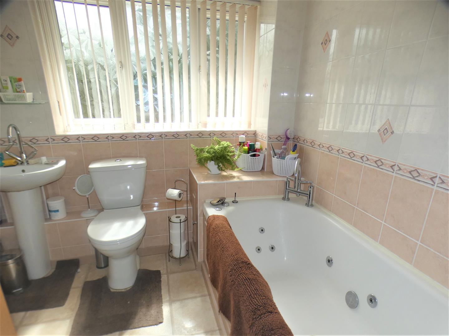 Family Bathroom - Fitted with a three piece suite comprising of a jacuzzi bath with mixer tap, pedestal wash hand basin with mixer tap, low level WC, electric shower over bath, chrome heated towel rail, inset spotlights to ceiling, extractor fan