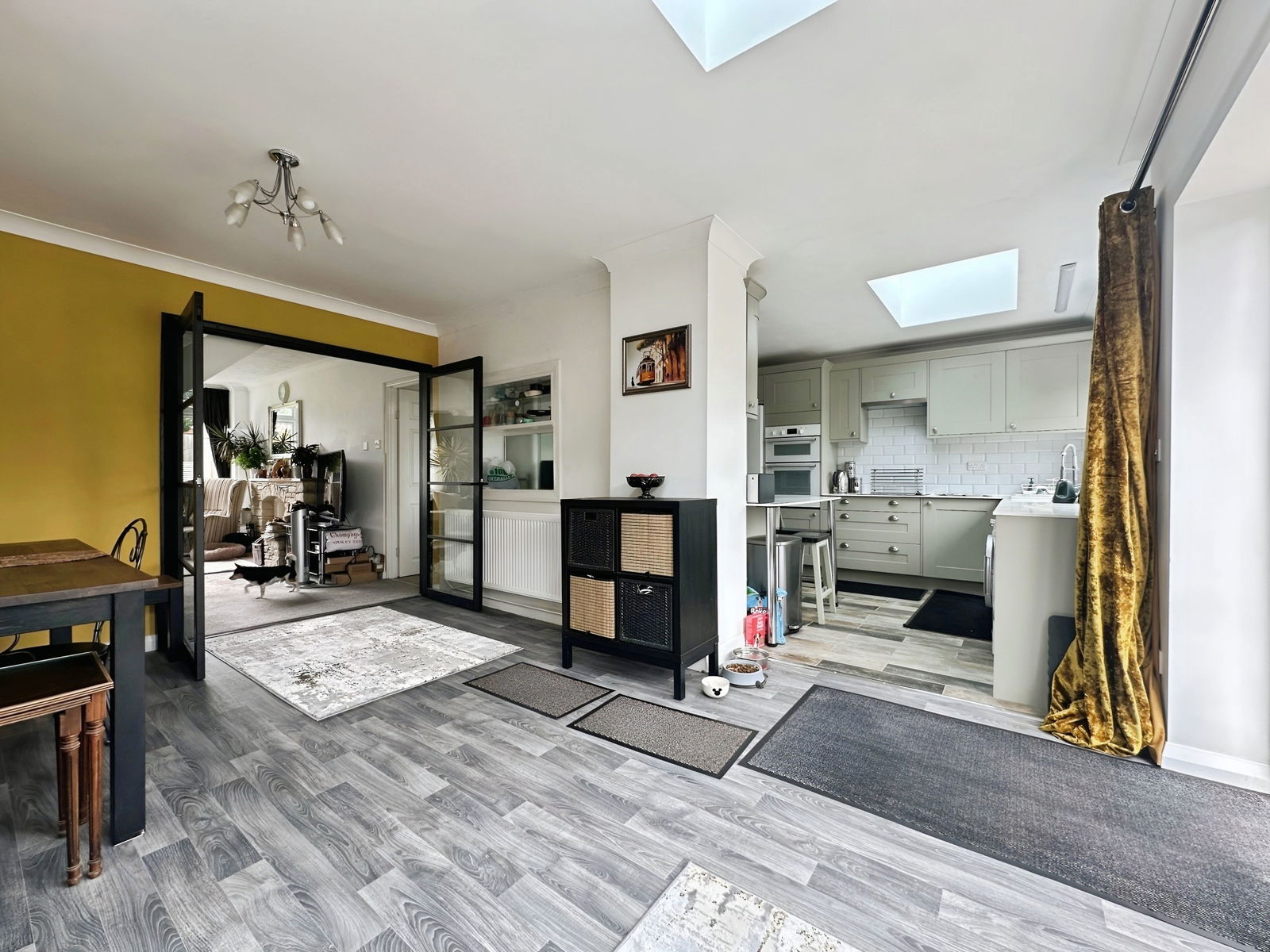 The ground floor comprises of spacious entrance hall leading to study/snug area with storage, living room with log burner, double doors through to extended dining room and recently replaced kitchen with a walk-in pantry. There is also direct access to the garage, offering potential to convert and a ground floor W/c.