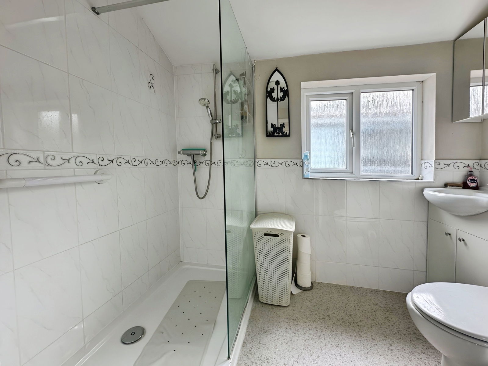 Upstairs there are three double bedrooms, including a 25ft main bedroom, making it possible to split into two bedrooms or add an en-suite/dressing room. Bedroom one and three also offer beautiful views across Hythe and the shipping lane in the distance. A large walk-in shower room completes the first floor accommodation.
