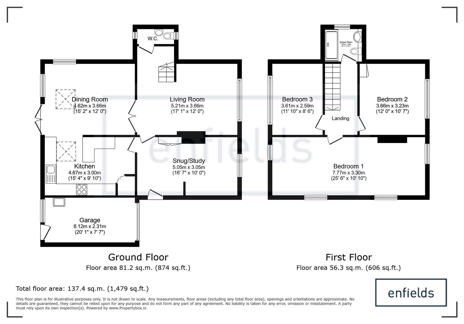 The ground floor comprises of spacious entrance hall leading to study/snug area with storage, living room with log burner, double doors through to extended dining room and recently replaced kitchen with a walk-in pantry. There is also direct access to the garage, offering potential to convert and a ground floor W/c.